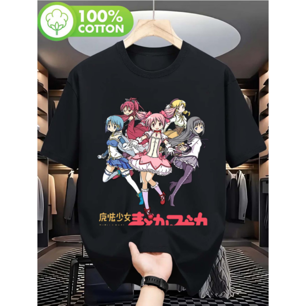 2026 Camiseta De Algodão Preta Puella Magi Madoka Magica Homura Akemi Madoka Kaname Unissex Street Style