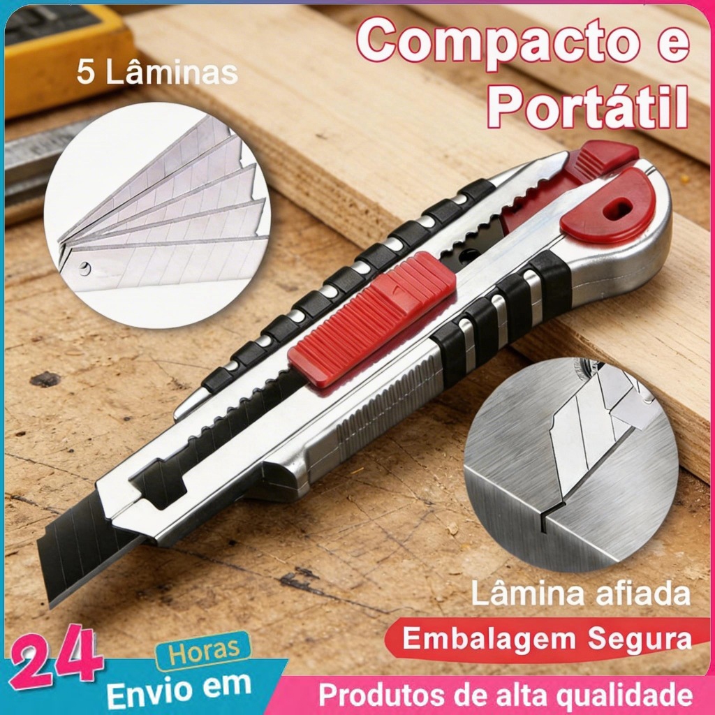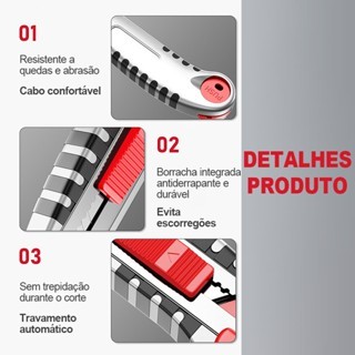 Envio imediato KITs Estilete Profissional Emborrachado c/+ 5 Lâminas Automático, Pegada Ergônomica