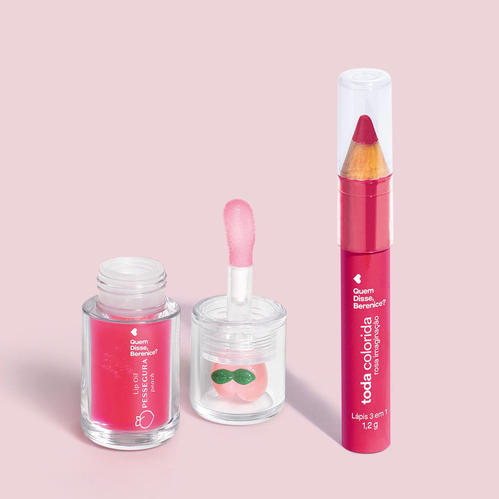 Combo Rosa: Lip Oil Cuide-se Bem Pessegura 3,5ml + Lápis Multifuncional 3 Em 1 Toda Colorida 1,2g