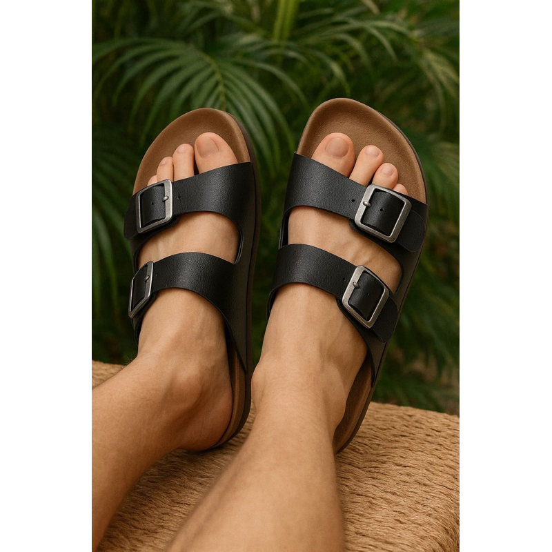 Sandália Masculina Papete com Fivelas Ajustáveis Confortável Moderna
