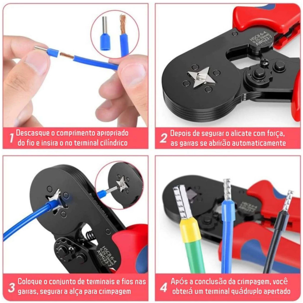KIT Alicate de Crimpagem Profissional + 800 Terminais Ilhos ISOLADOS PLUS