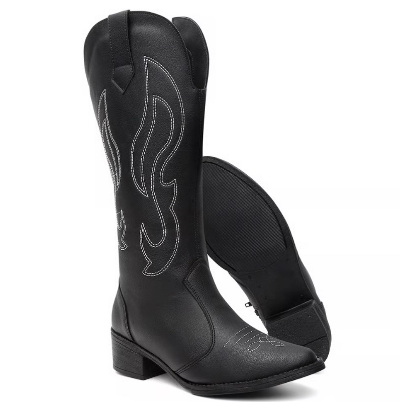 Bota Feminina Cano Alto Western Bordado Ref (0001)