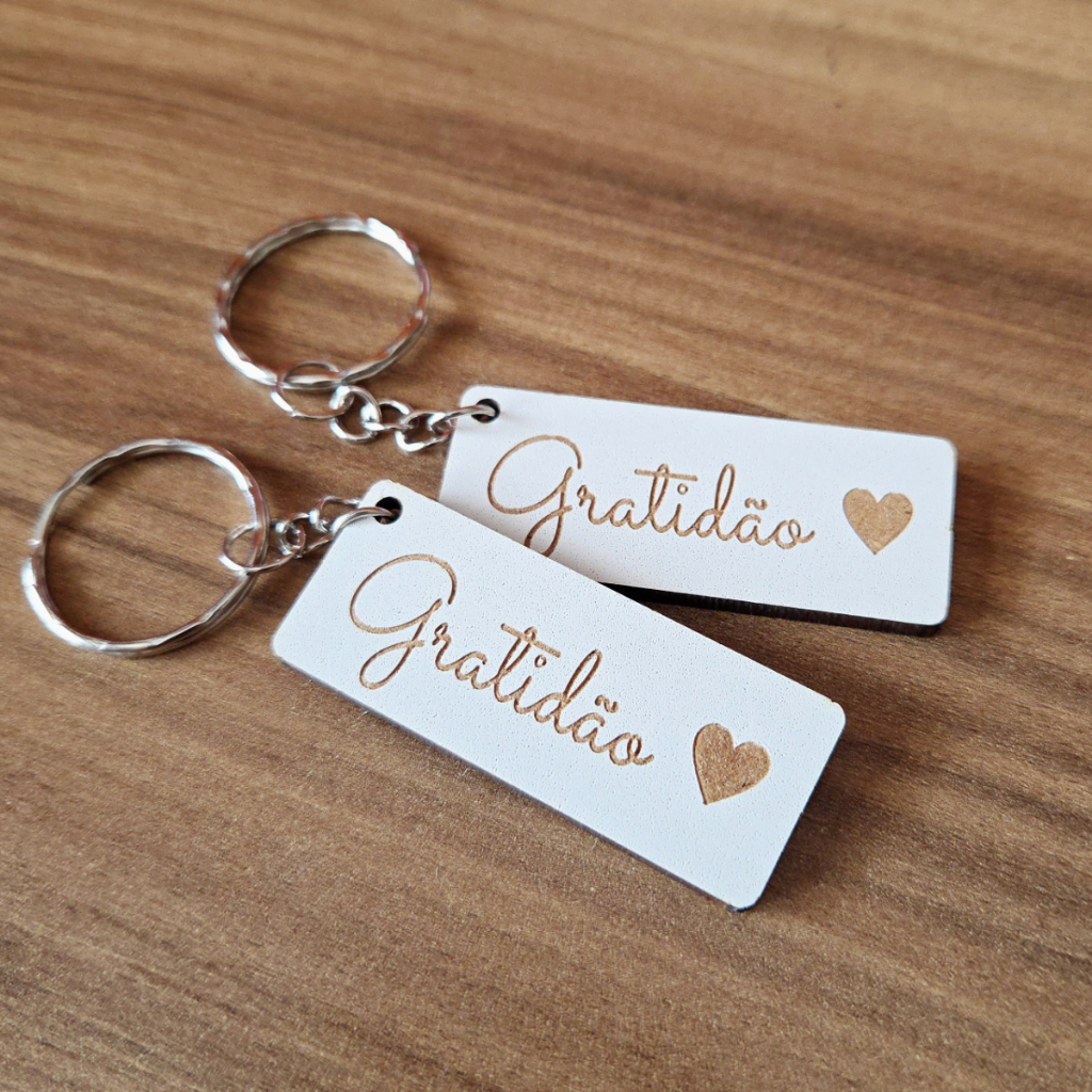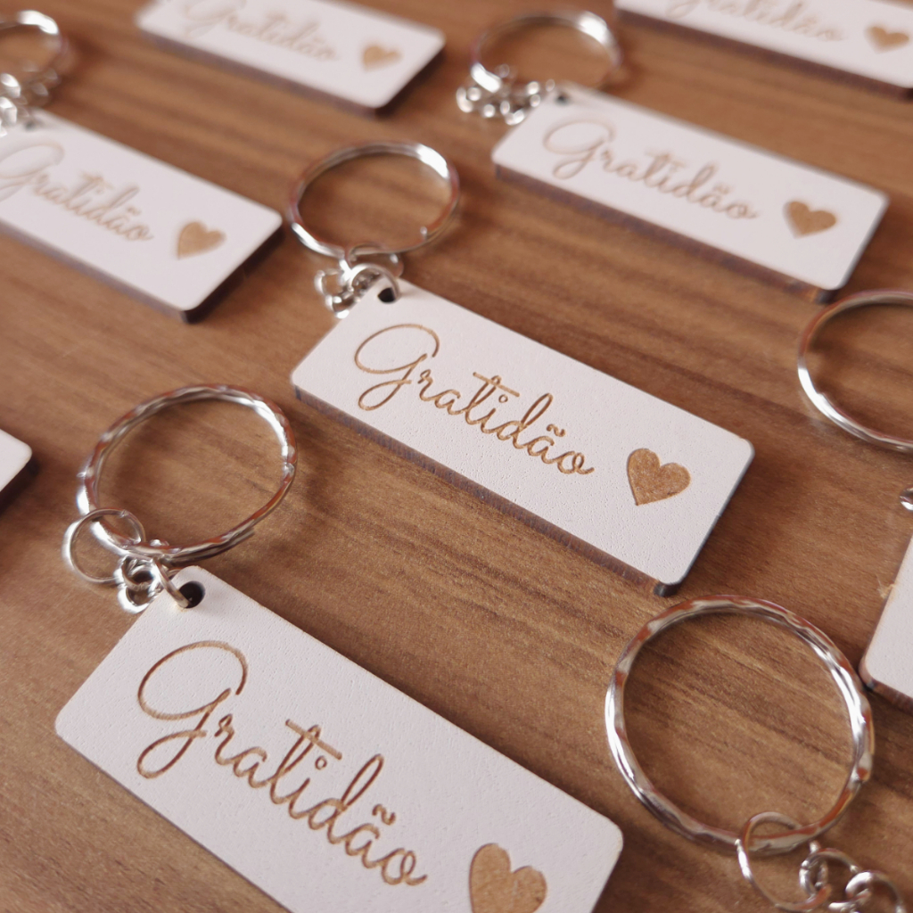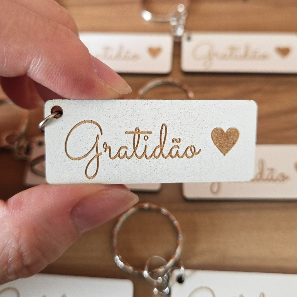 Kit 10/30/50/100 Chaveiros Gratidão com Coração em Mdf Branco 3mm Lembrança Religiosa Fé Deus