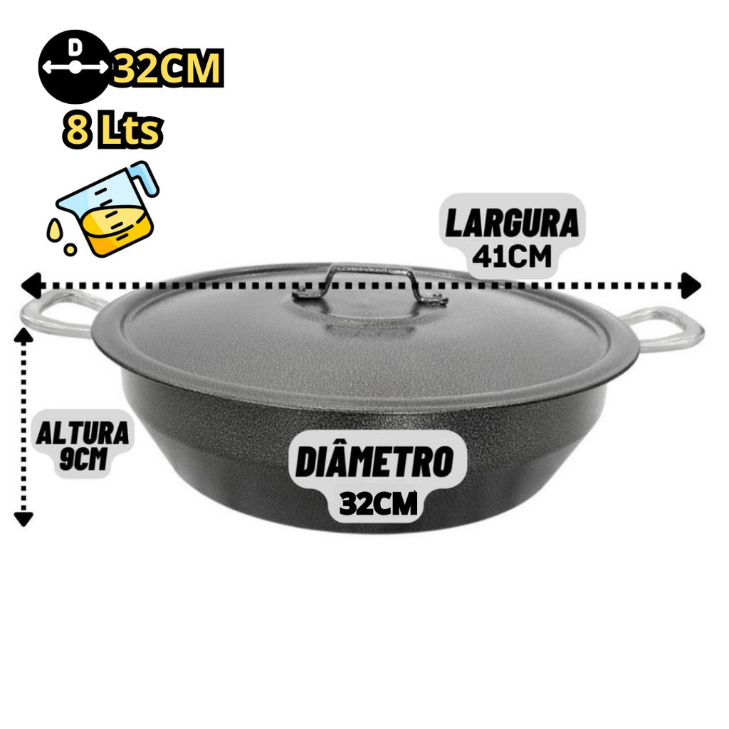 Panela Tacho 32cm 8 litros C/ tampa Craqueado ou Polido Em Alumínio Grosso