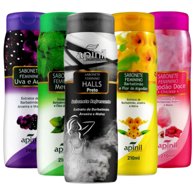 KIT 5 Sabonete Corporal Líquido Íntimo Apinil Fragrâncias Sortidas