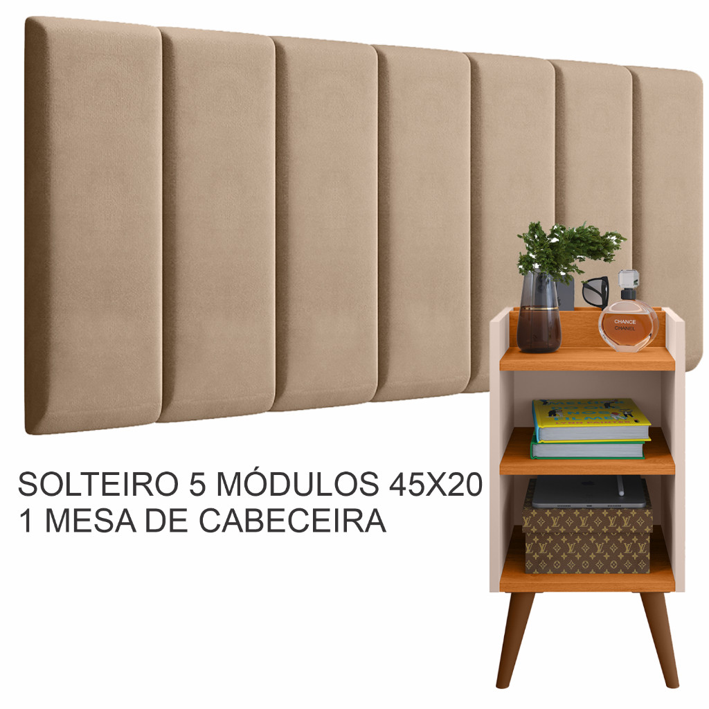 Conjunto Quarto Casal Solteiro 2 Mesas de Cabeceira Com Prateleira E Cabeceira Modulado - MÓVEIS UP