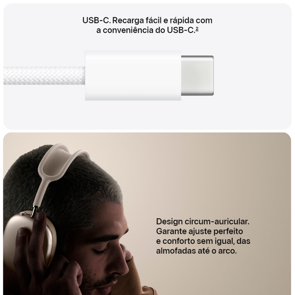 Fone de Ouvido Apple AirPods Max USB-C Smart Case Cancelamento Ruído Original 1 Ano Garantia Lacrado