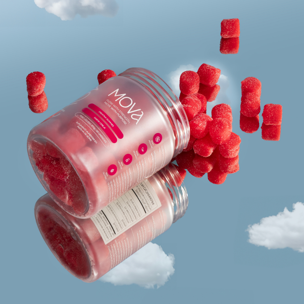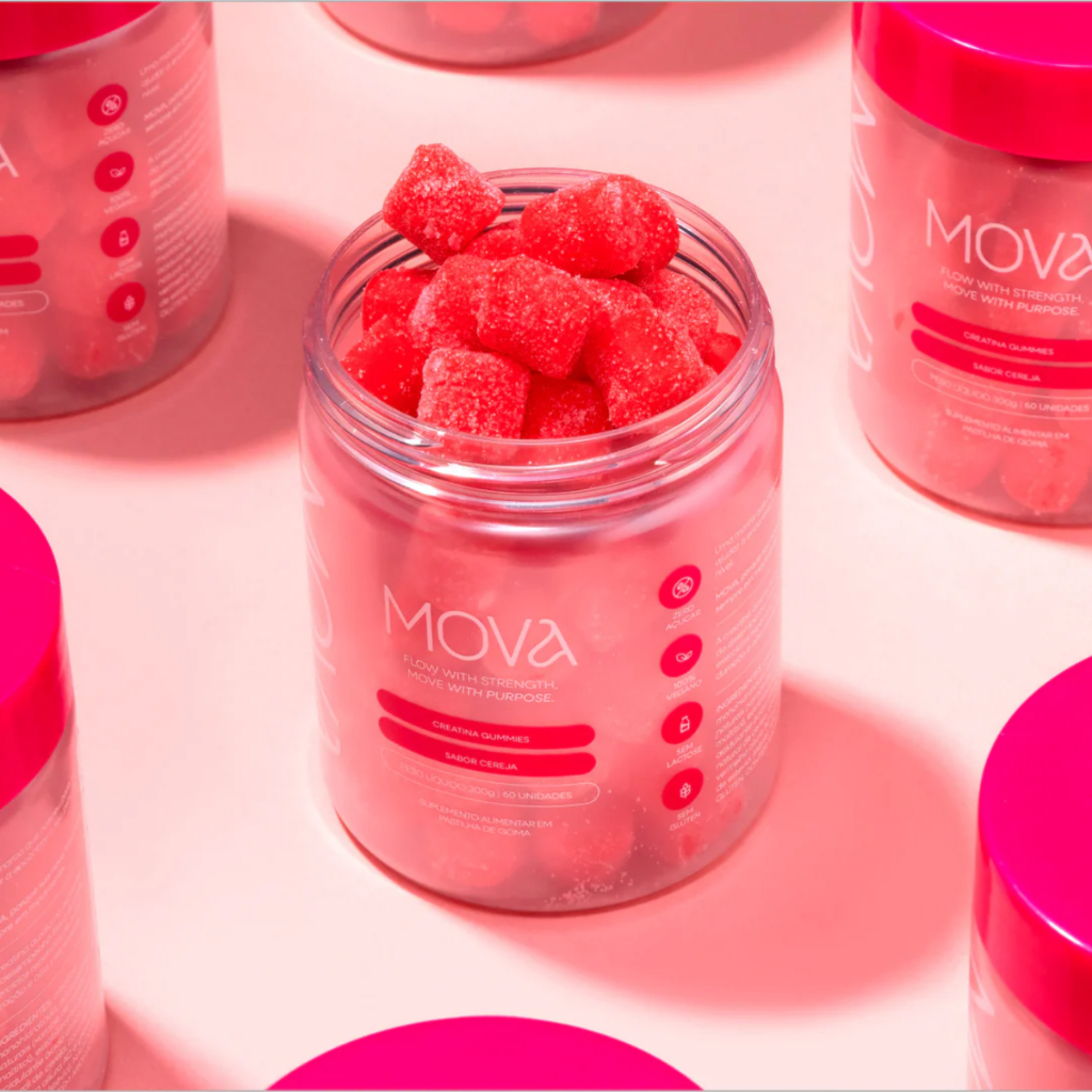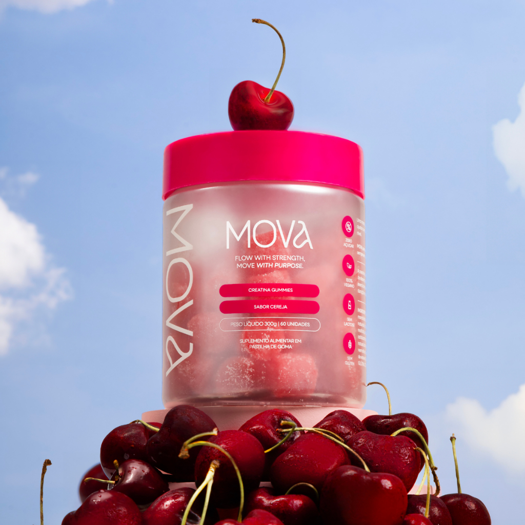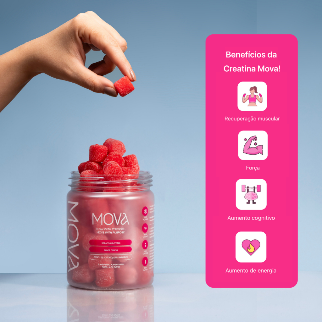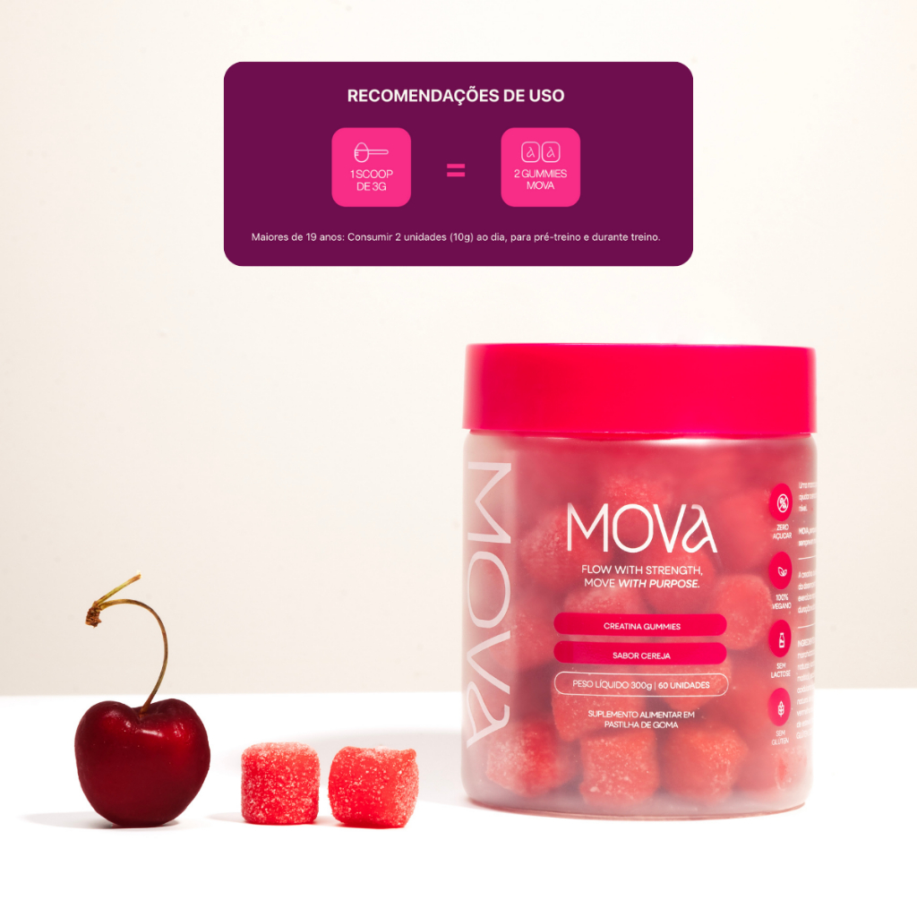 2x Creatina Monohidratada Em Goma | Sabor Cereja | Zero Açúcar | 120 Unidades | Mova