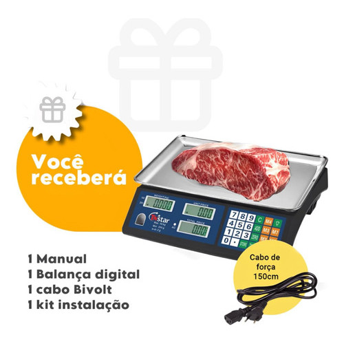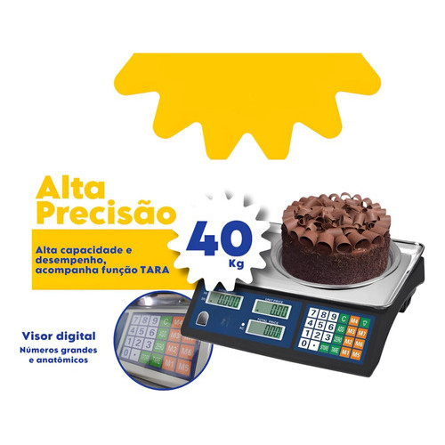 Balança Digital Comercial 40kg Compacta Alta Precisão 127/220v Branco