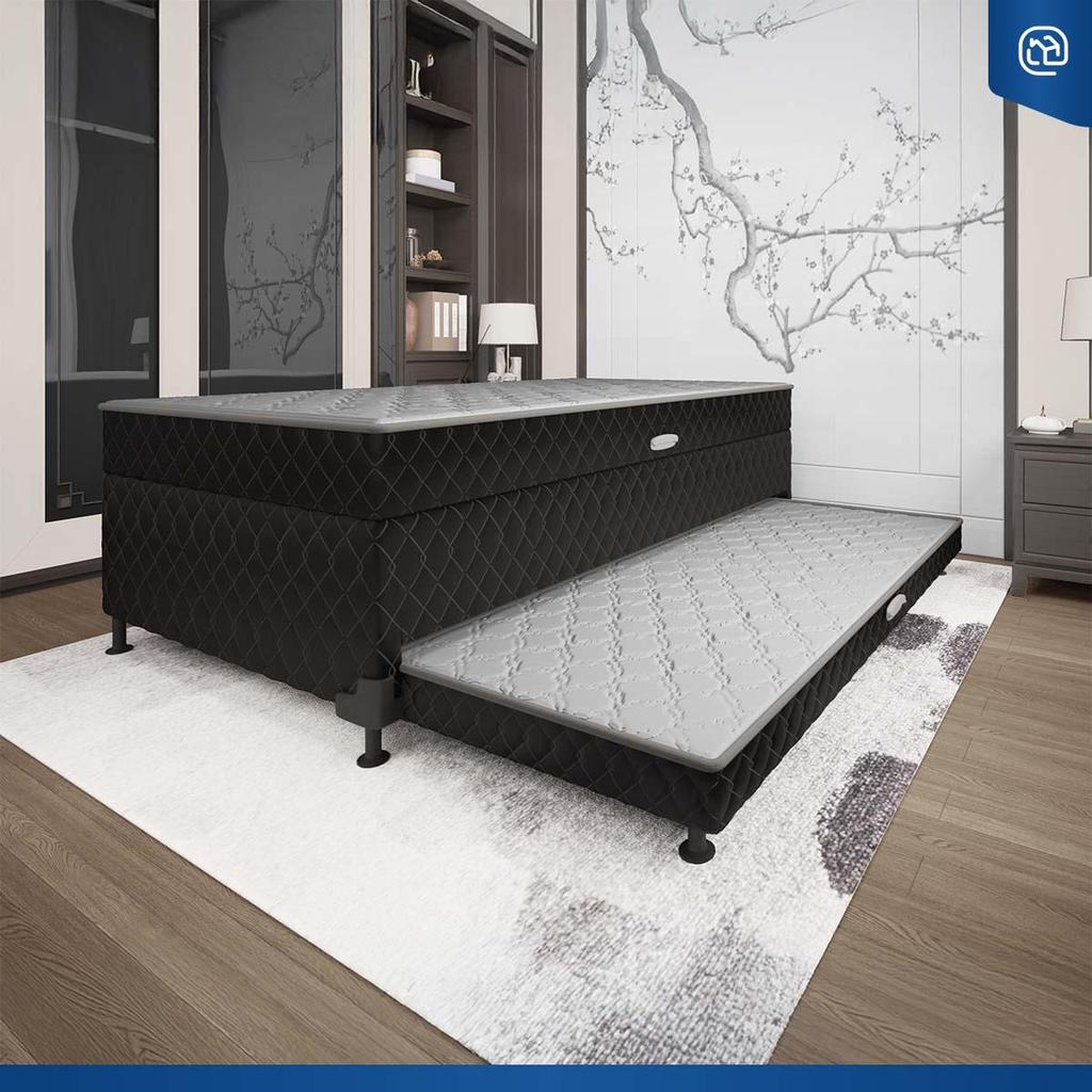 Cama Box Baú com Colchão de Espuma Acoplado e Auxiliar de Espuma Copenhague Solteiro 88cm
