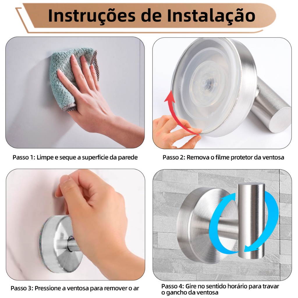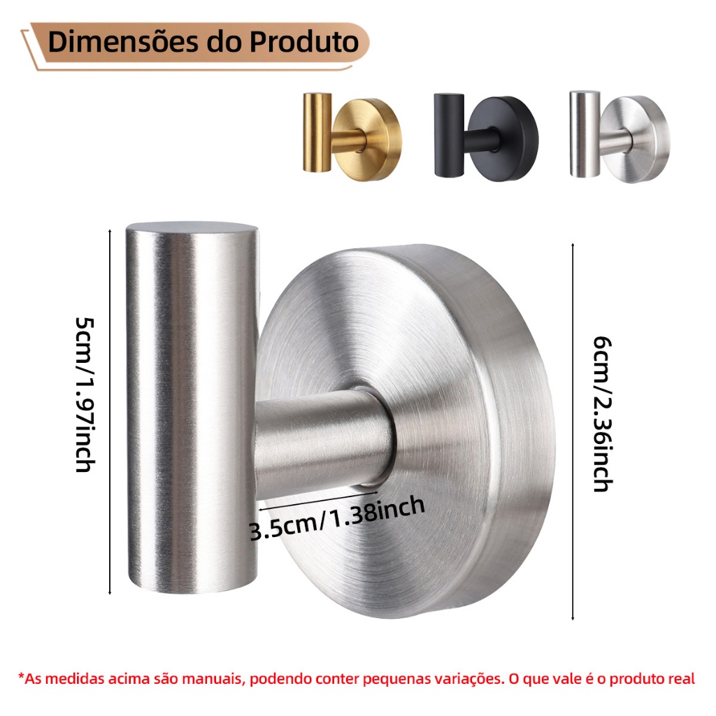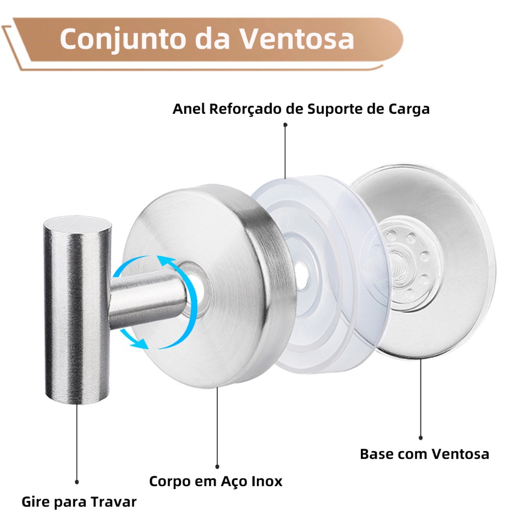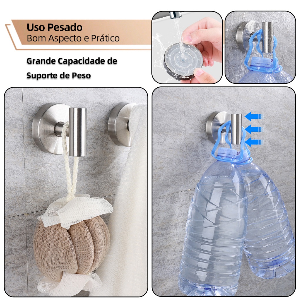 Gancho de Ventosa Redondo em Aço Inox 304 Fixação na Parede para Banheiro de Hotel, Sem Necessidade de Furos