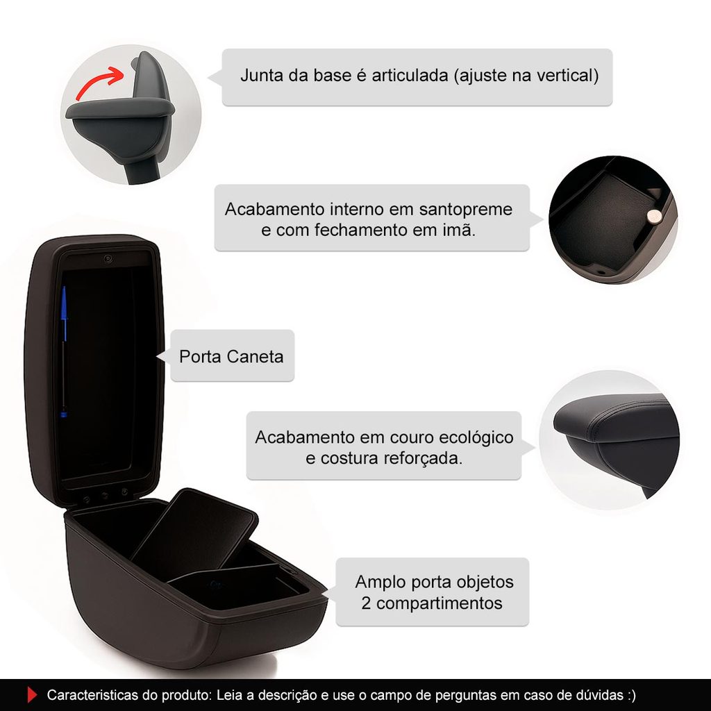 Apoio De Braço Para Carro Celta 2001 Até 2016 E Prisma 2007 Até 2012 Couro