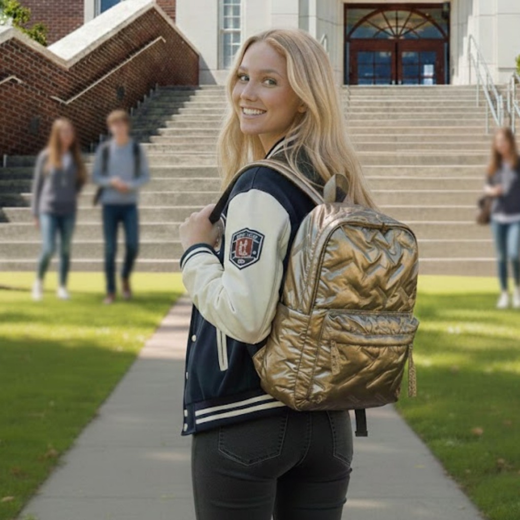 Mochila Feminina Metalizada Puffer Fofa – Moderna, Leve e Espaçosa e Bonita 5 Cores