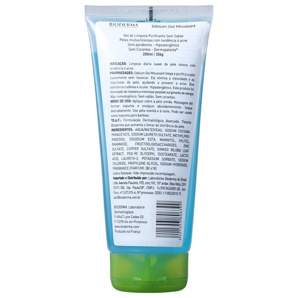 Bioderma Sébium Gel Moussant Gel de Limpeza Antioleosidade de Alta Tolerância 200ml