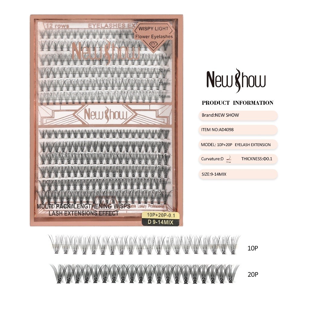 New Show Cartela De Cilios Tufo Tufinho Tipo Combinado 0.07D 9-14MIX
