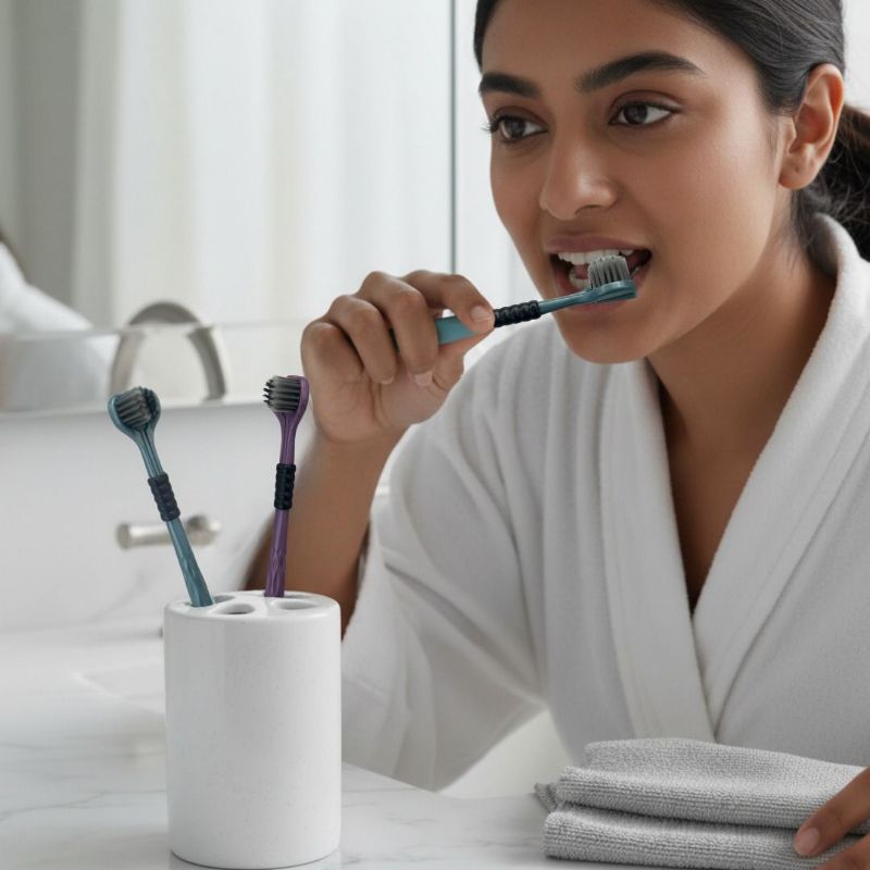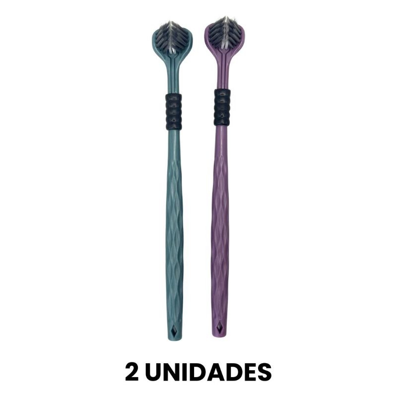 escova de dentes 3 lados kit 2 pcs com cerdas macias para maior conforto limpo