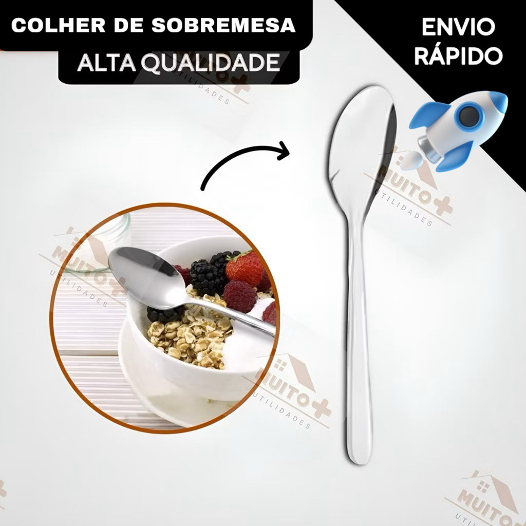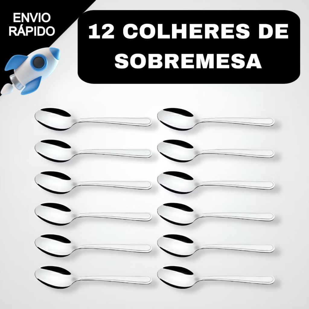 Jogo de Talheres 24 peças de Colheres De Sobremesa Em Aço Inox Mesa Cozinha Jantar