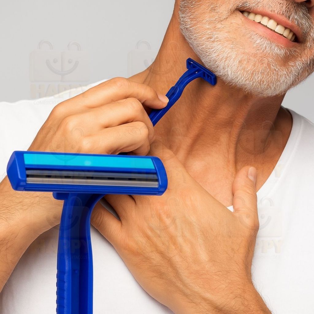 Kit 24 Barbeador Descartável 2 Lâminas com Fita Lubrificante | Prestobarba Uso Diário e Profissional