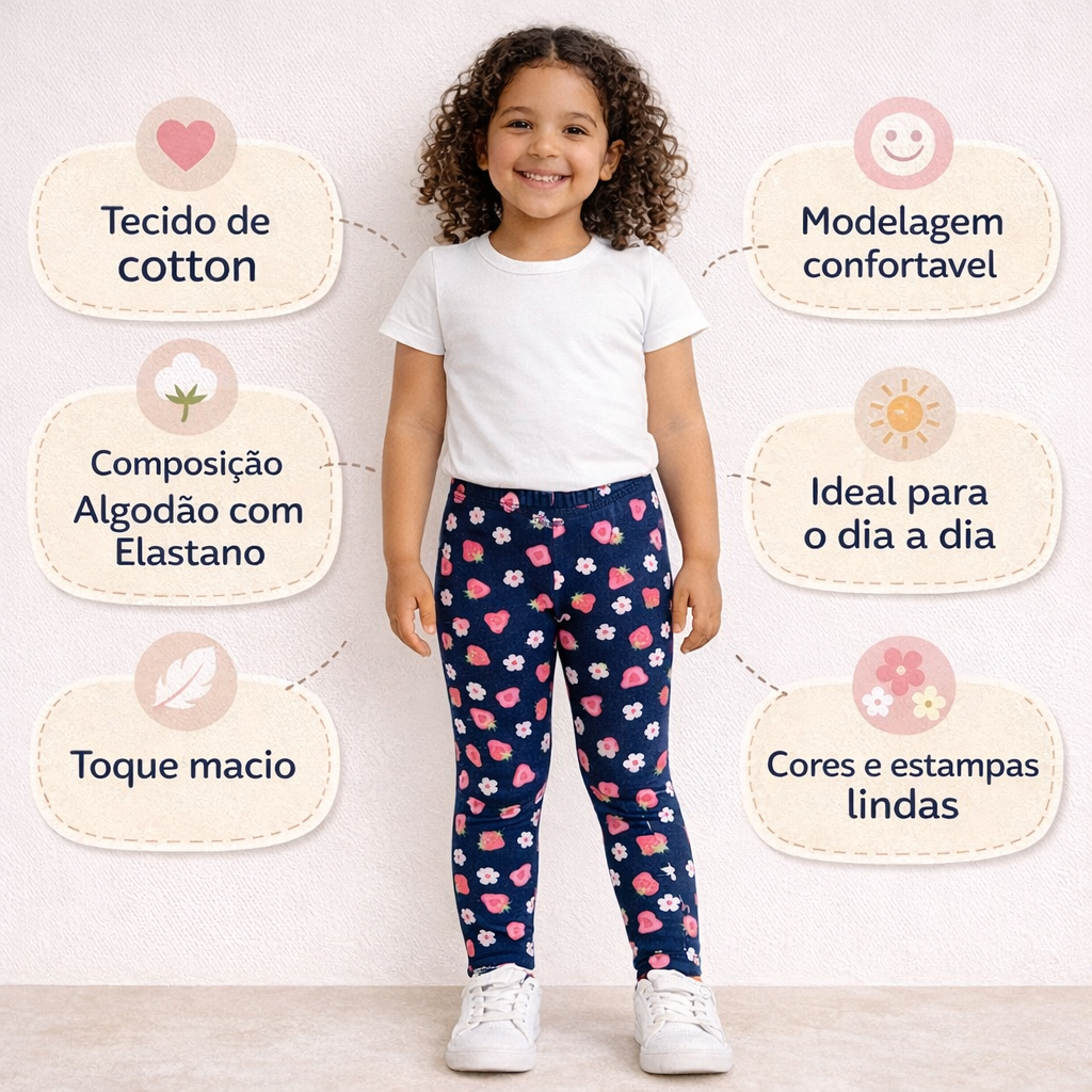Kit 3 Legging Infantil Estampada Algodão Tamanhos 1 ao 10