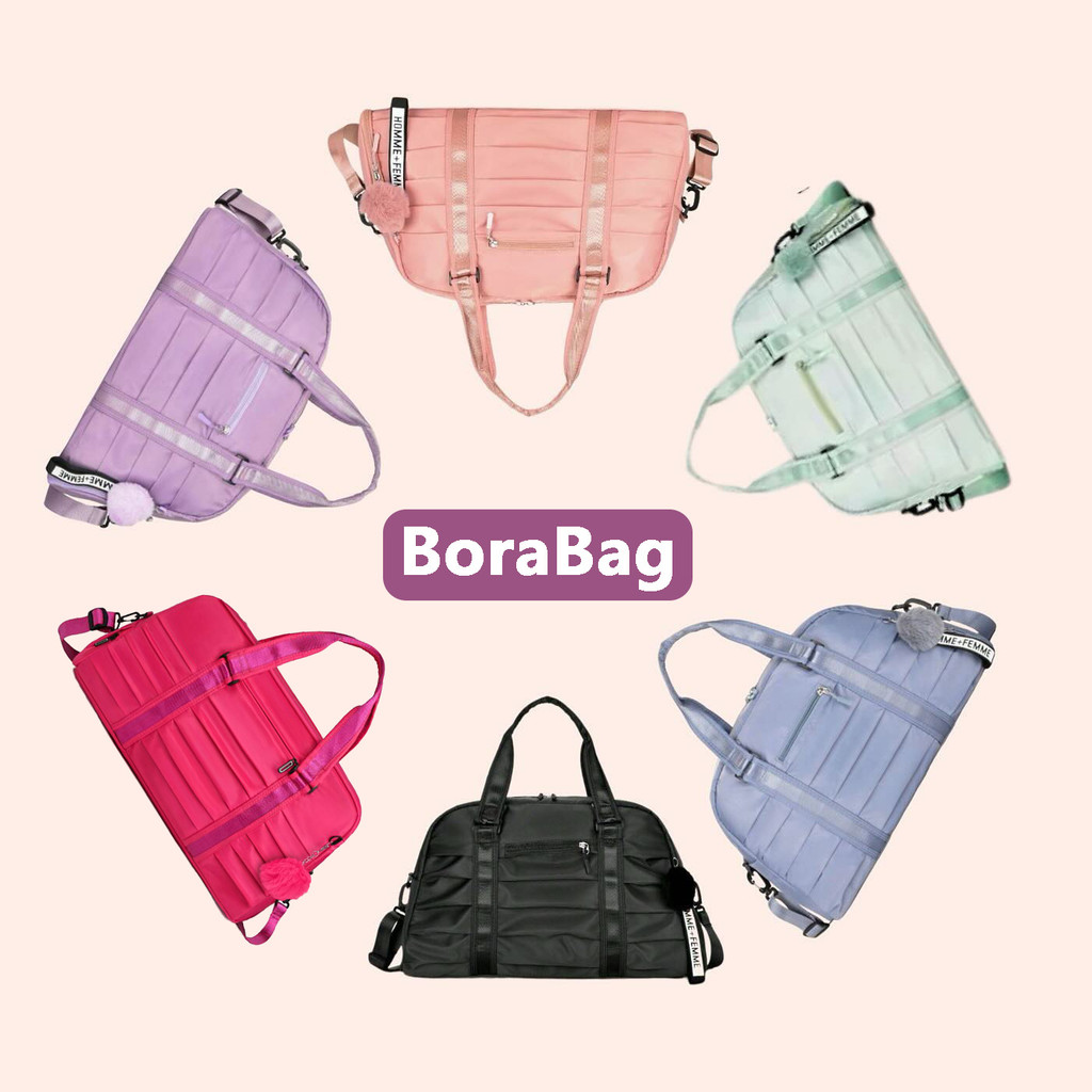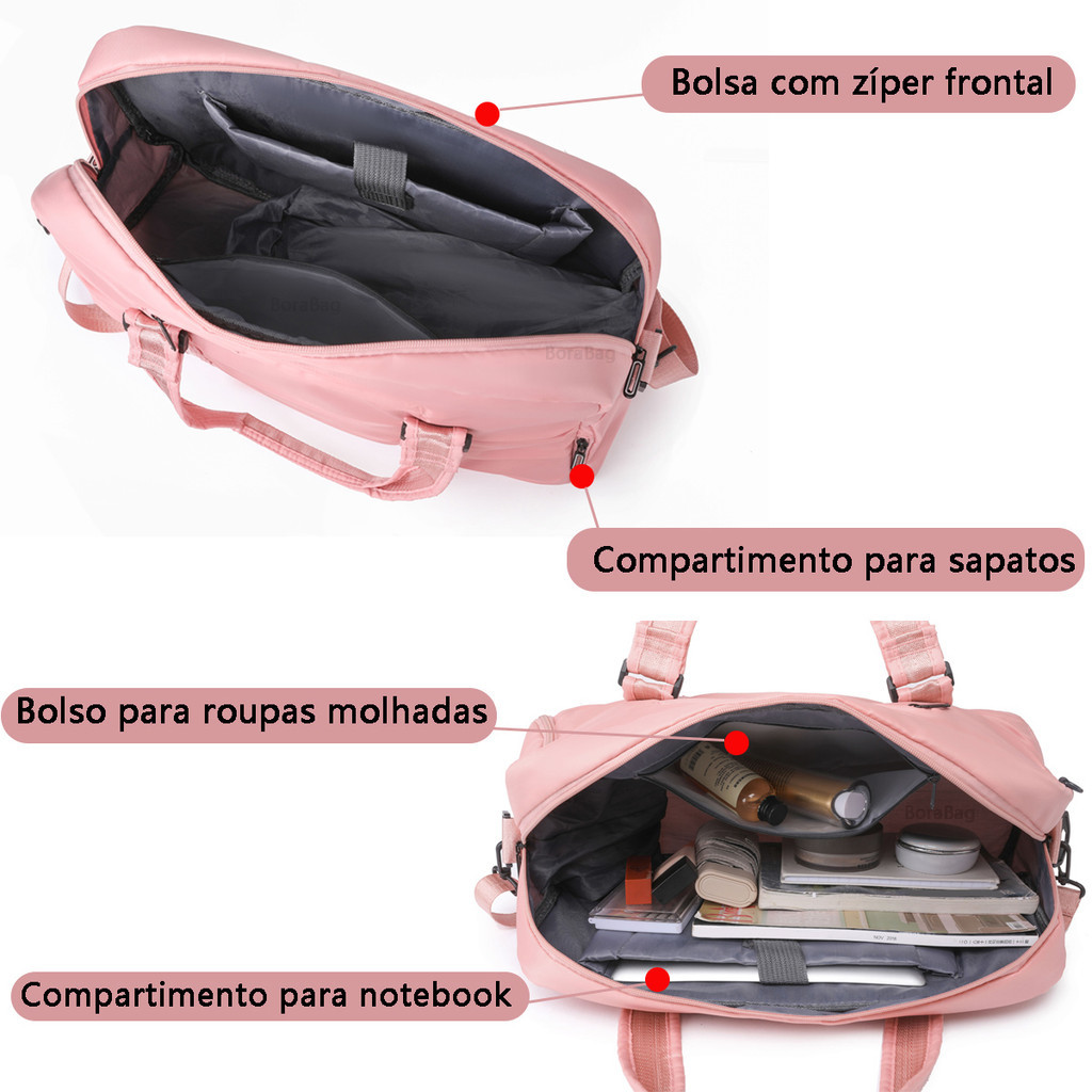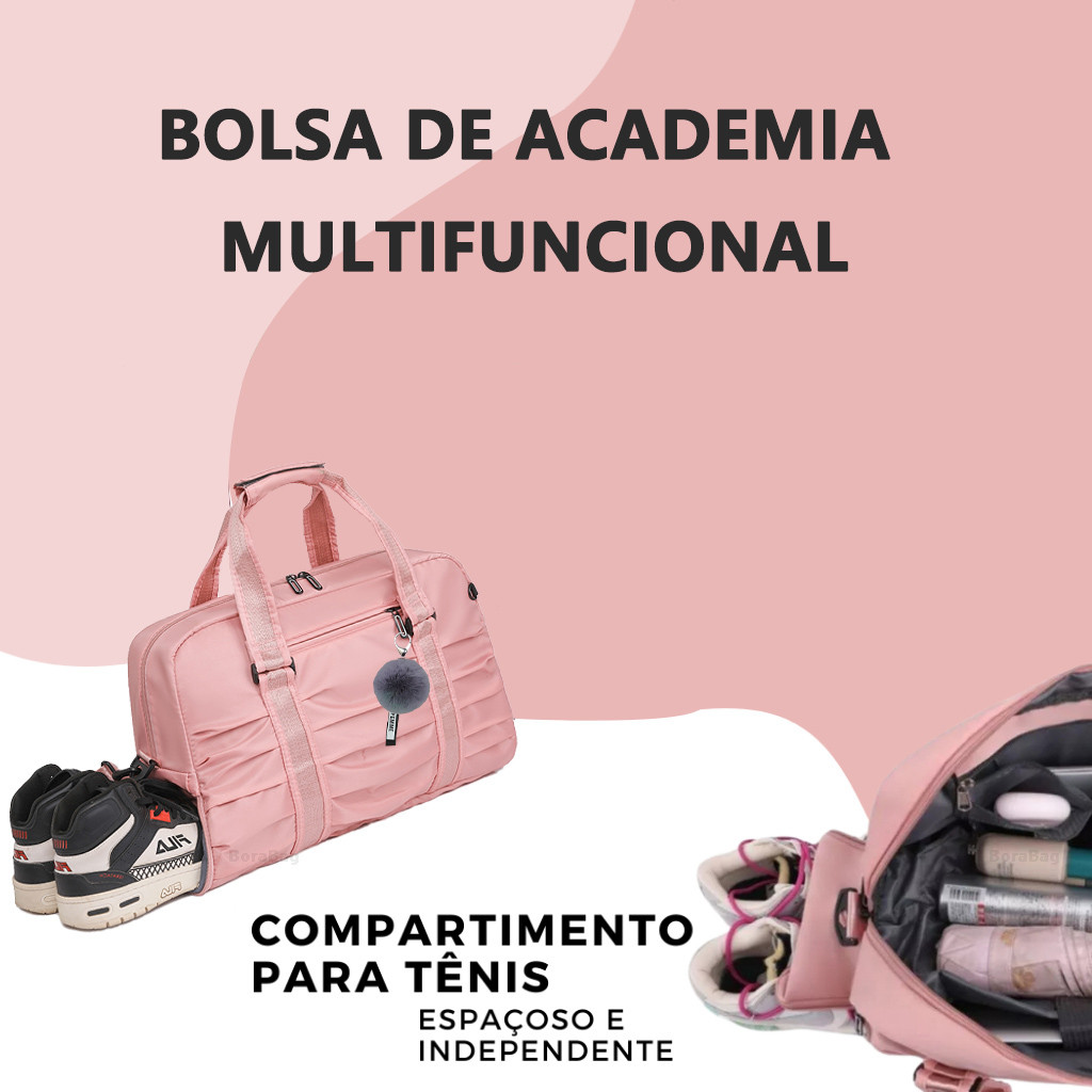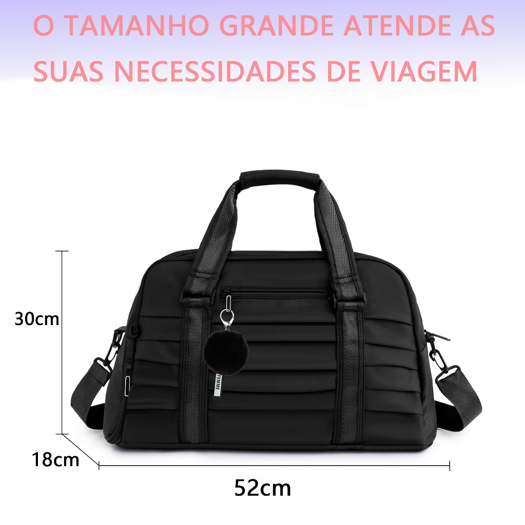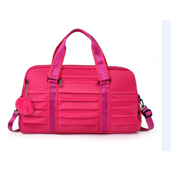 Bolsa Fitness Feminina Plissada Impermeável Grande Capacidade com Pingente de Pelúcia – Academia, Viagem e Ombro