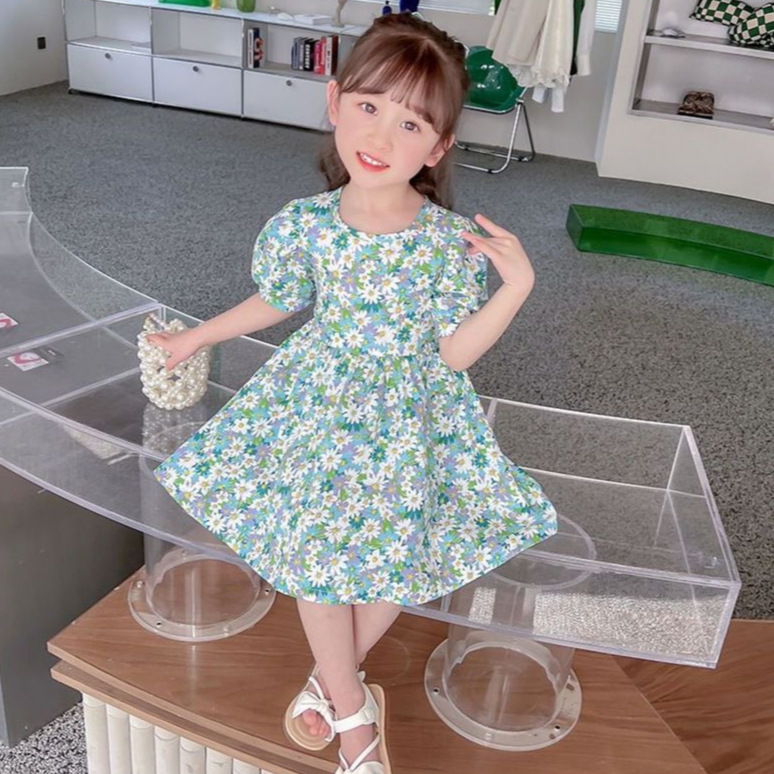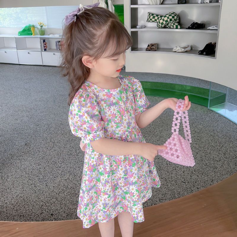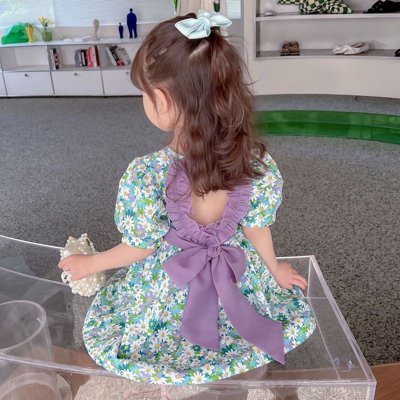 【SWEETIE BLOOM】Vestido Menina Flores Laço Coração Costas Decoradas Vestido Princesa Moderno Menina Moda Infantil