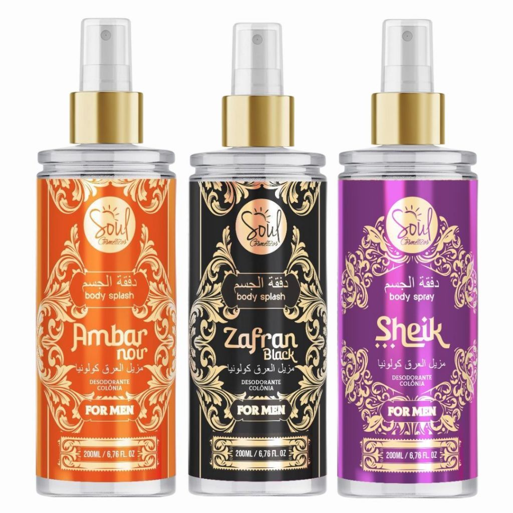 Body Splash SOUL MASCULINO 200ml AMBAR - SHEIK - ZAFRAN SOUL DESODORANTE, COLONIA, PERFUME, CORPORAL