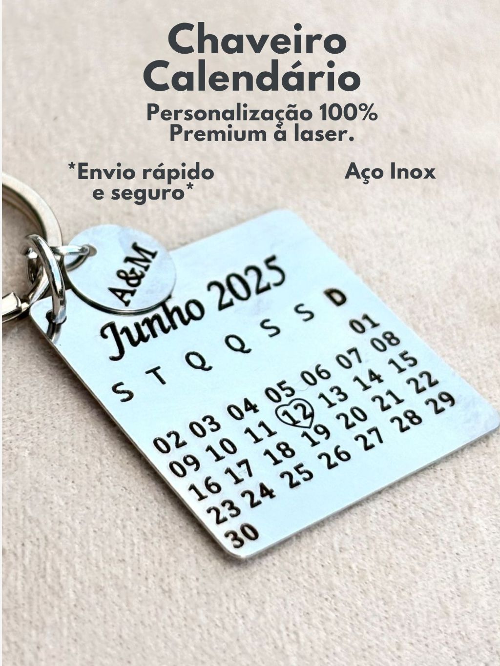 Chaveiro Calendário Personalizado Data Especial Gravado a Laser Inox