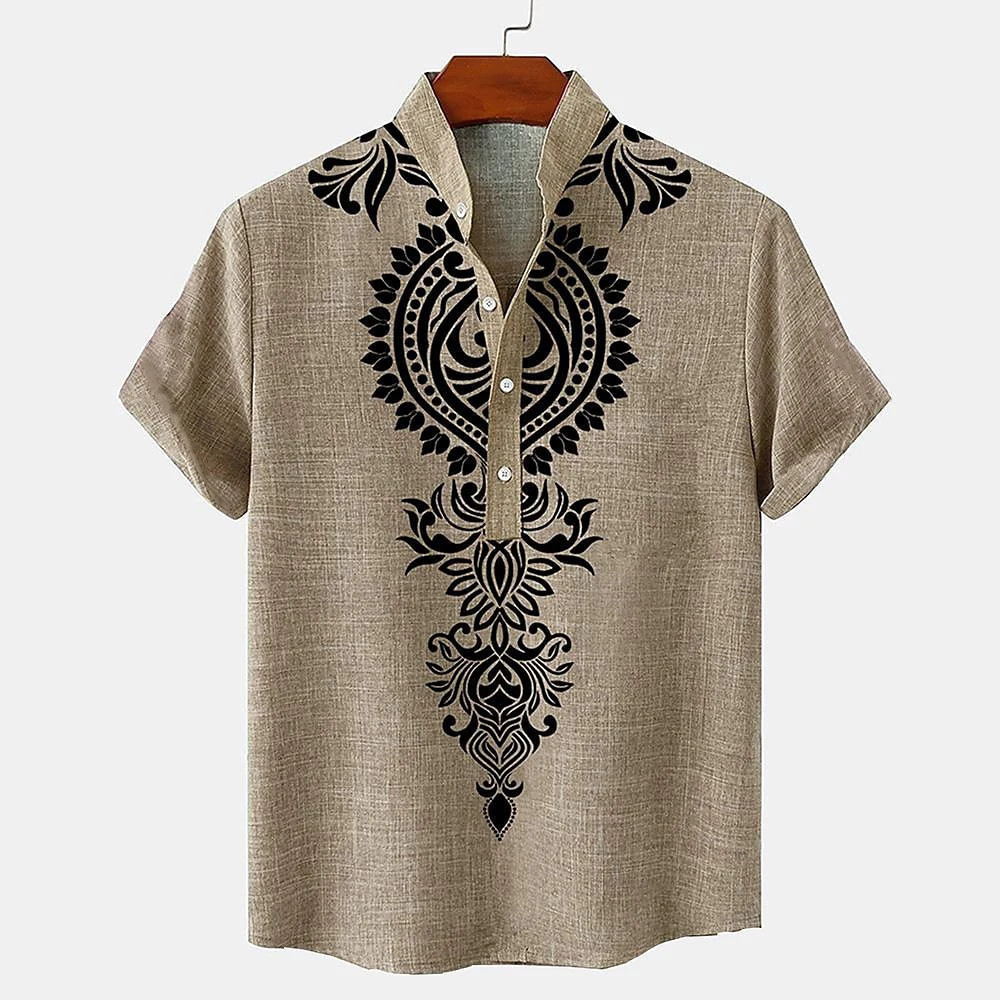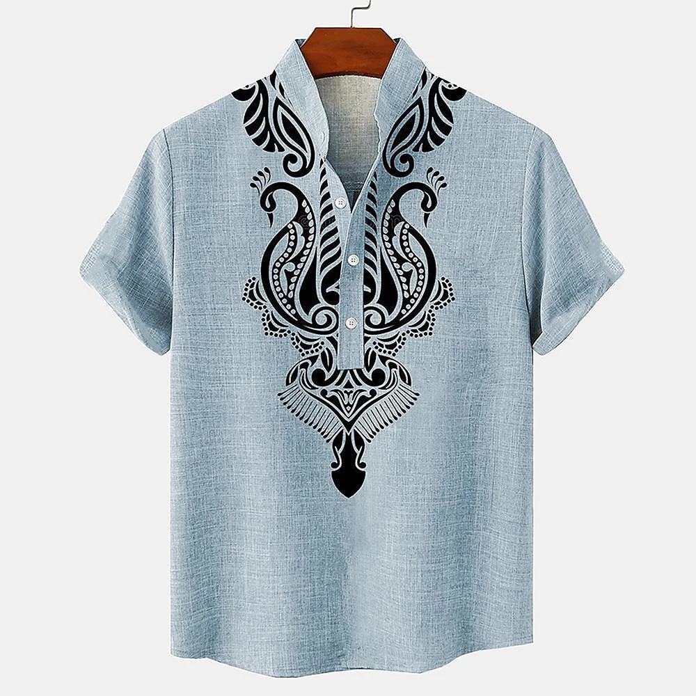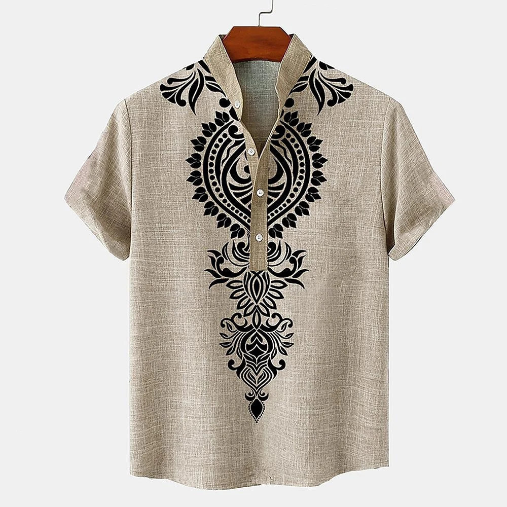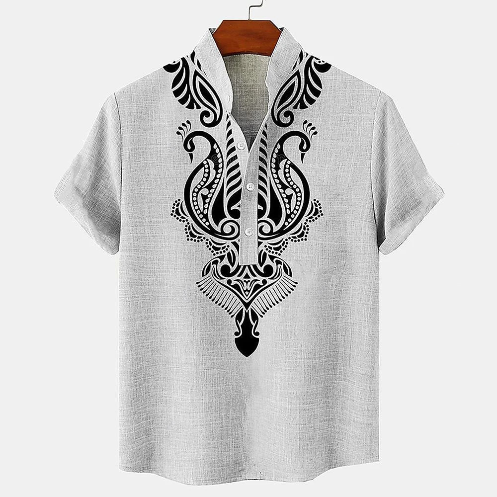 Estilo Étnico Camisa Barong Masculina Para Roupas Masculinas Vintage ASEAN Topos Étnica Oversize Padrão Retro Ao Ar Livr