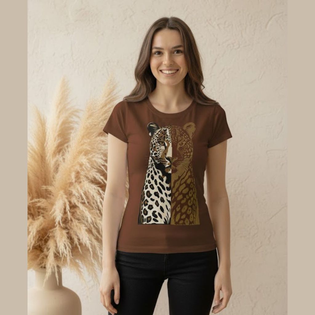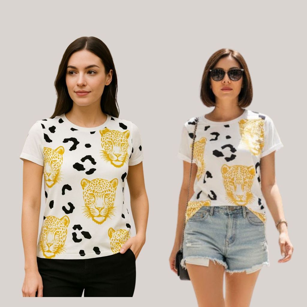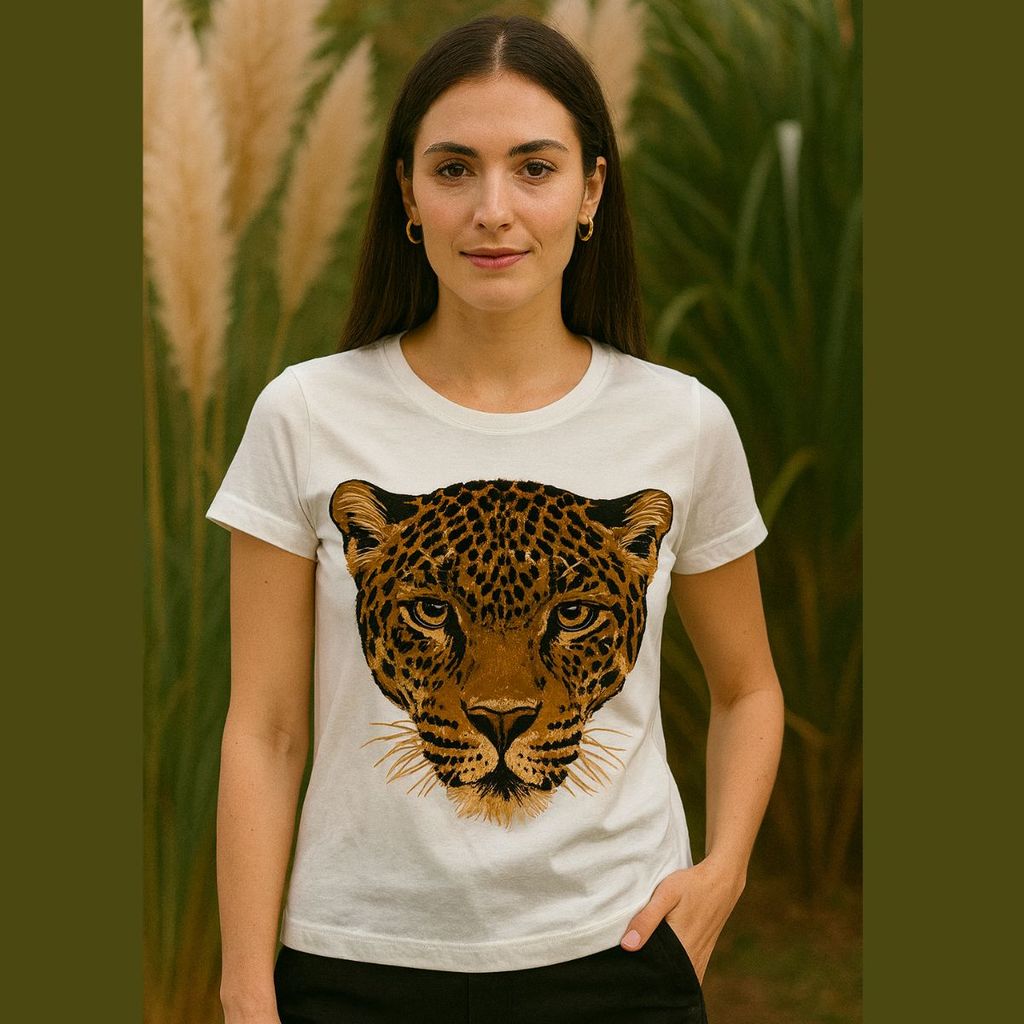 Camiseta Feminina Gola Careca Off White Algodão Animal Print