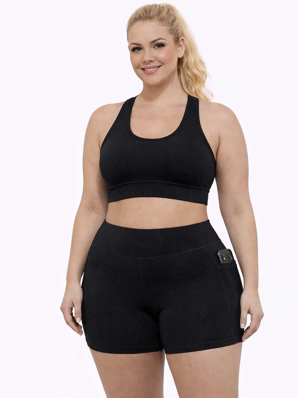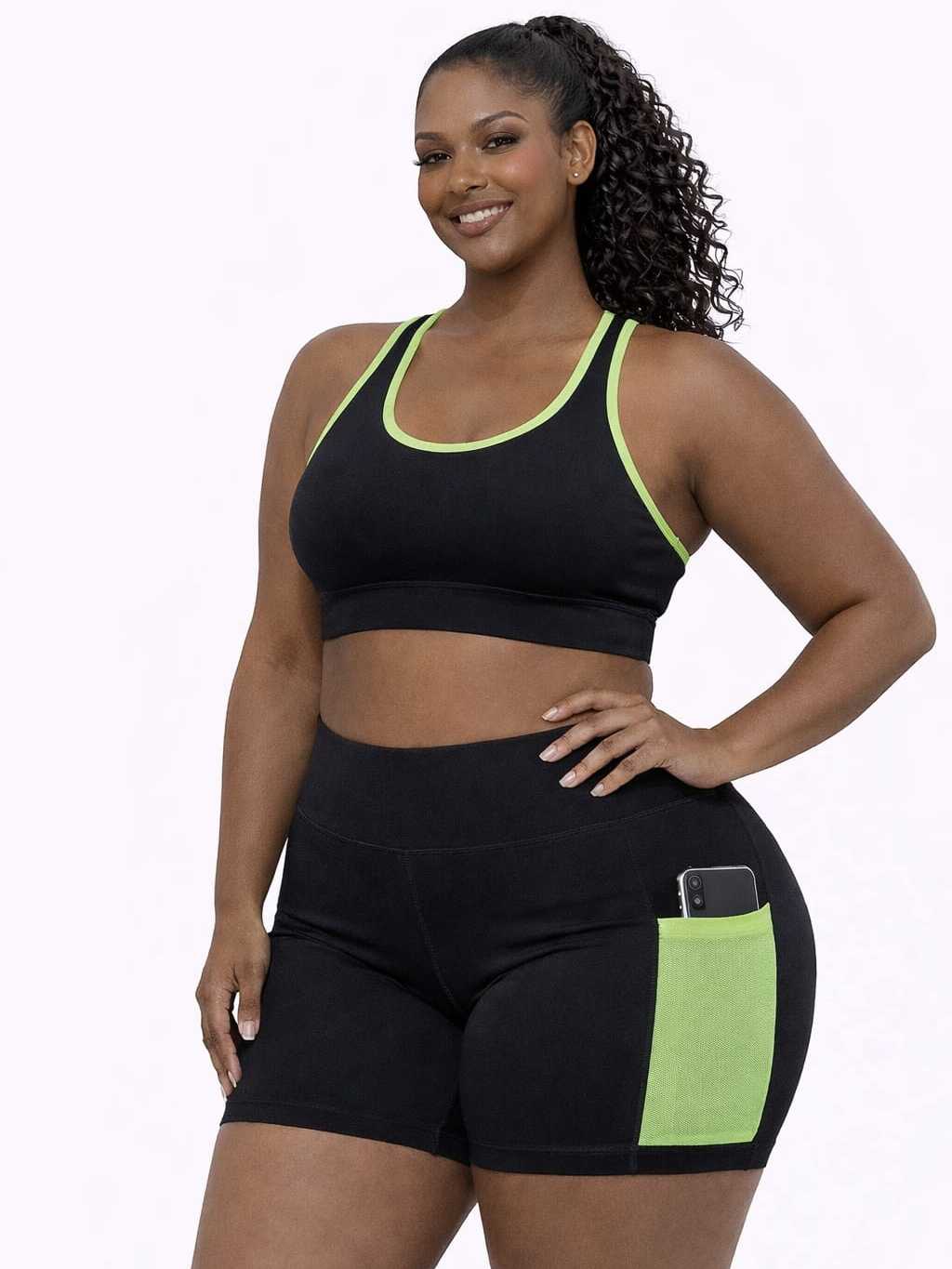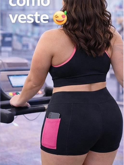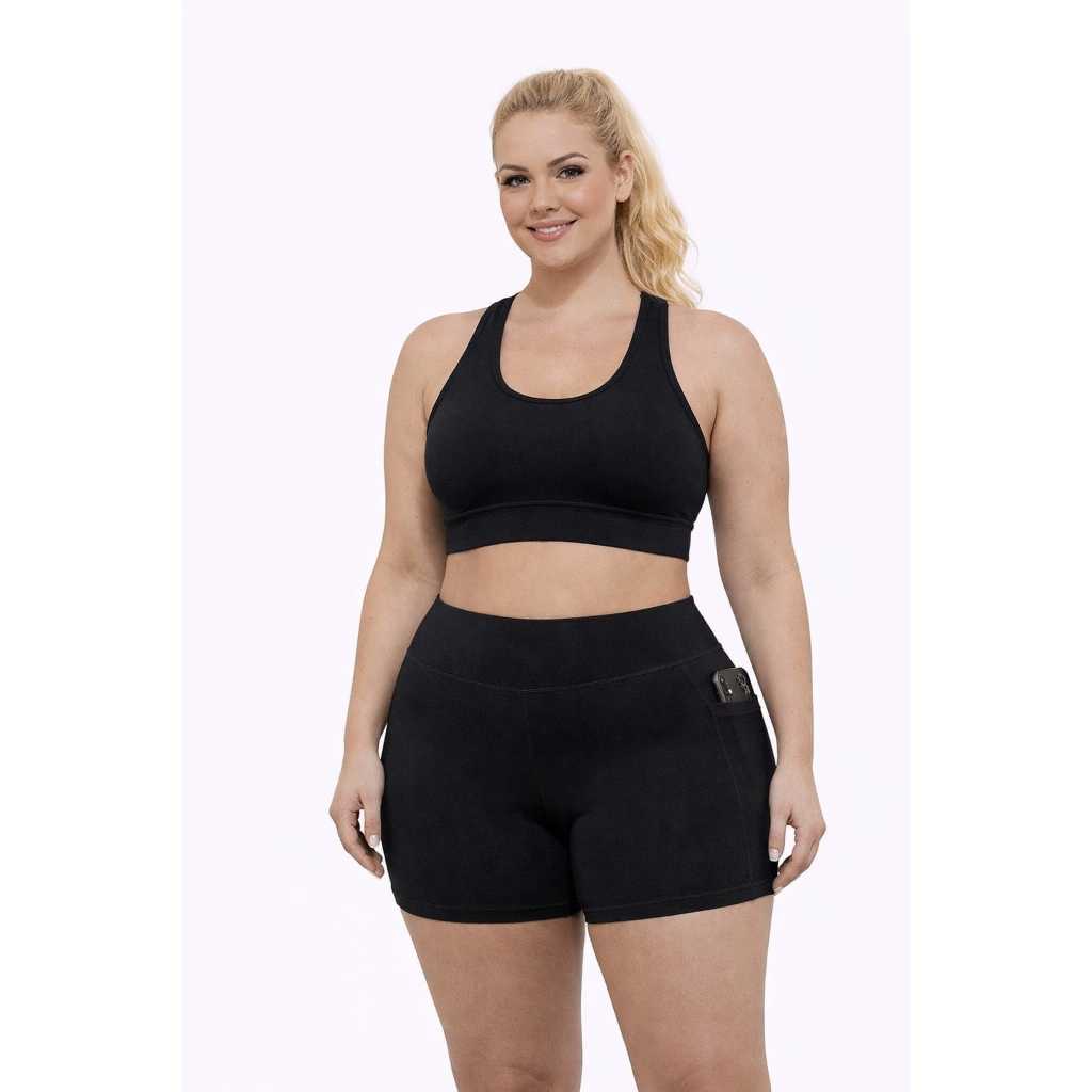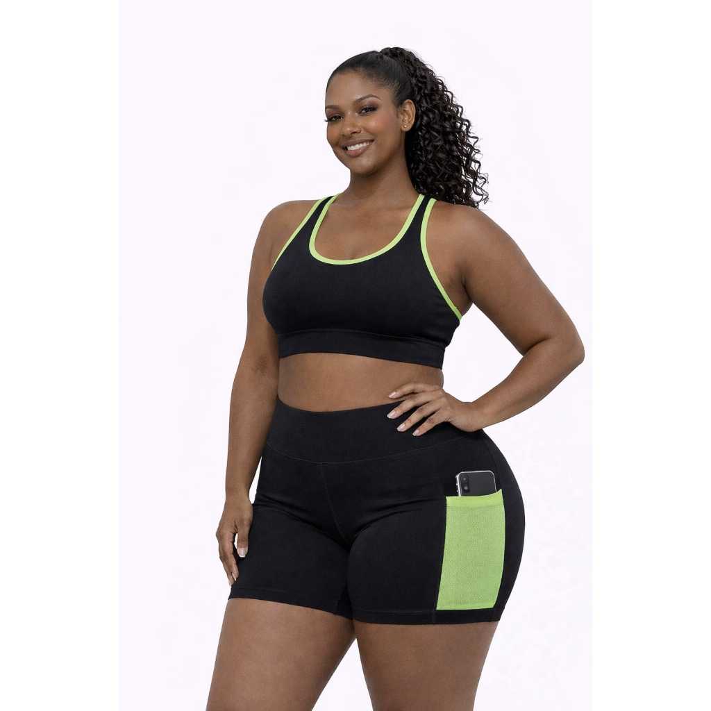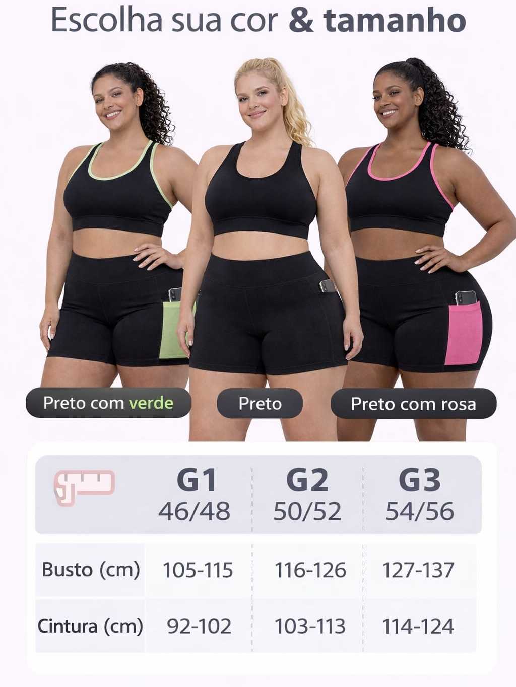 CONJUNTO FITNESS PLUS SIZE FEMININO TOP E SHORT CINTURA ALTA COM BOLSO ACADEMIA G1 G2 G3