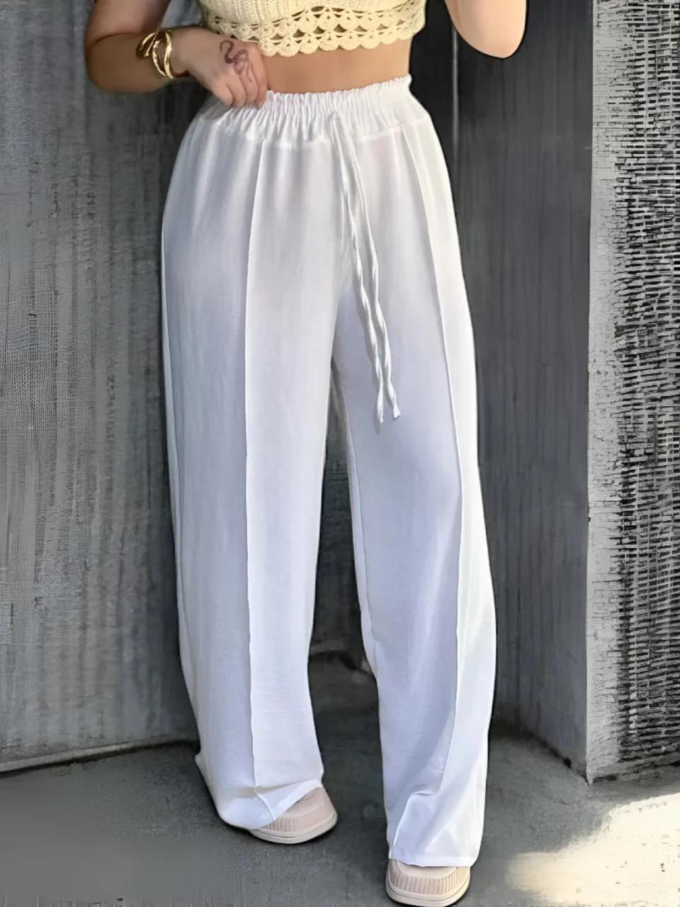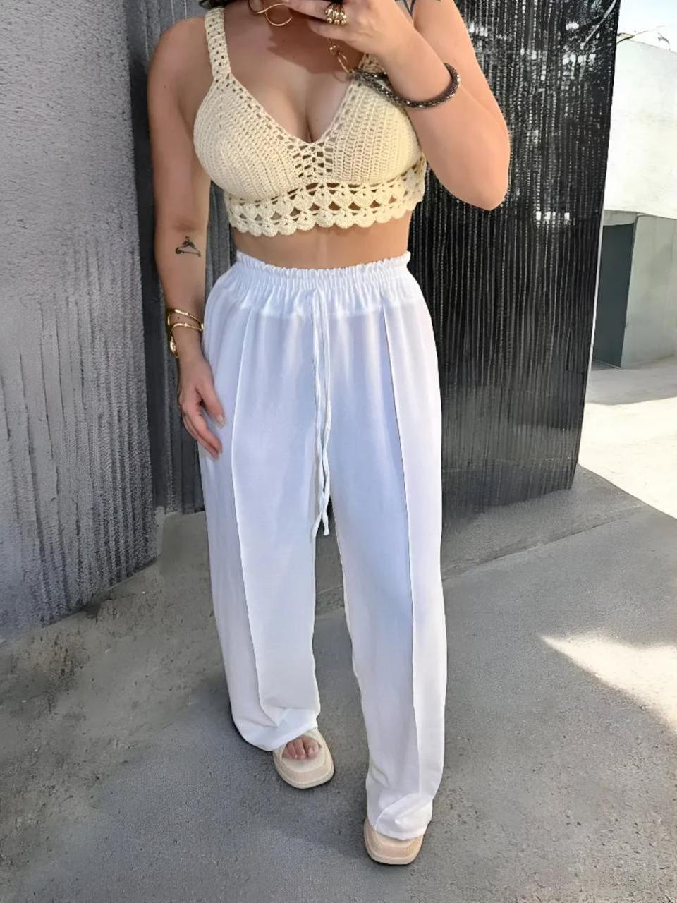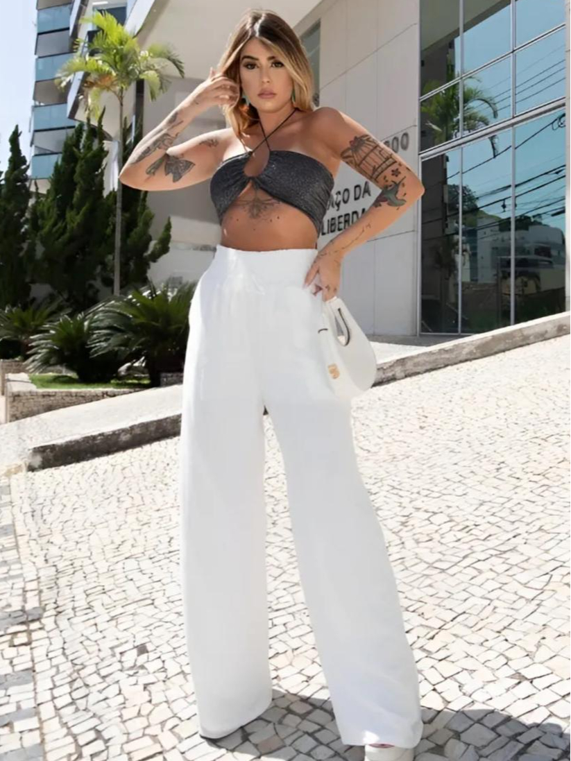 Calça Feminina Pantalona Branco Wide Leg Duna Tendência Casual Conforto Moderna Estilosa Praia Linda