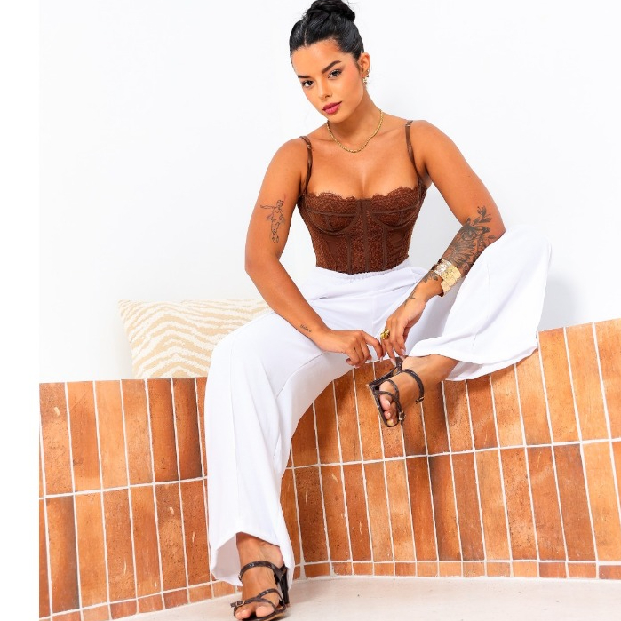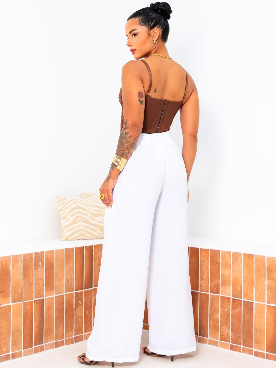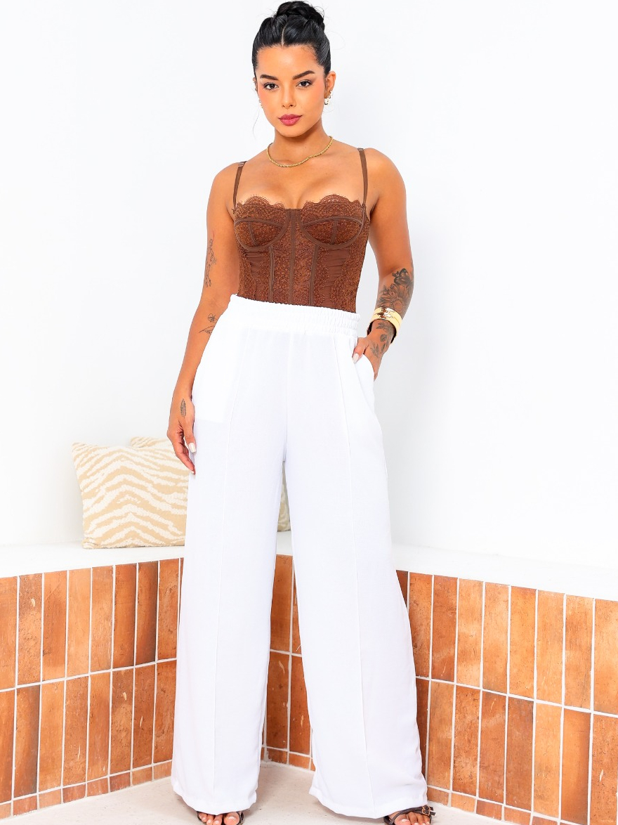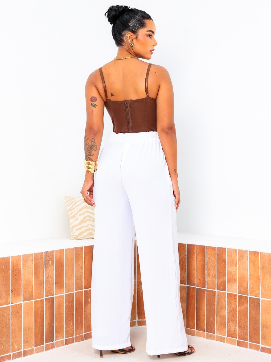 Calça Feminina Pantalona Premium Branco Wide Leg Duna Tendência Casual Conforto Moderna Estilosa