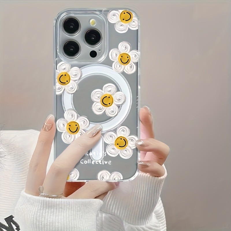 Flores sorridentes Capinha Capa de Transparente Para iPhone 11 14 15 16 12 17 13 pro max 7/8 plus produto em alta