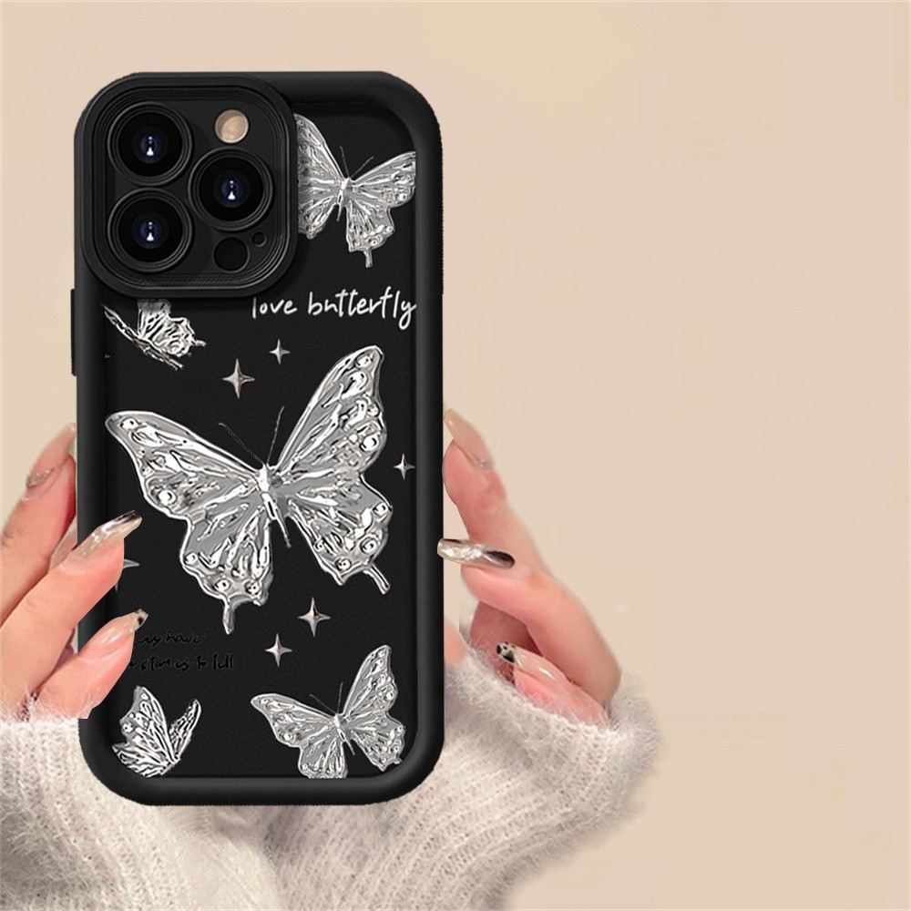 Capa De Telefone Borboleta Prateada Para iPhone 17 Pro Max 17 16 15 13 11 14 12 11 Xs XR XSMAX X 7/8PLUS