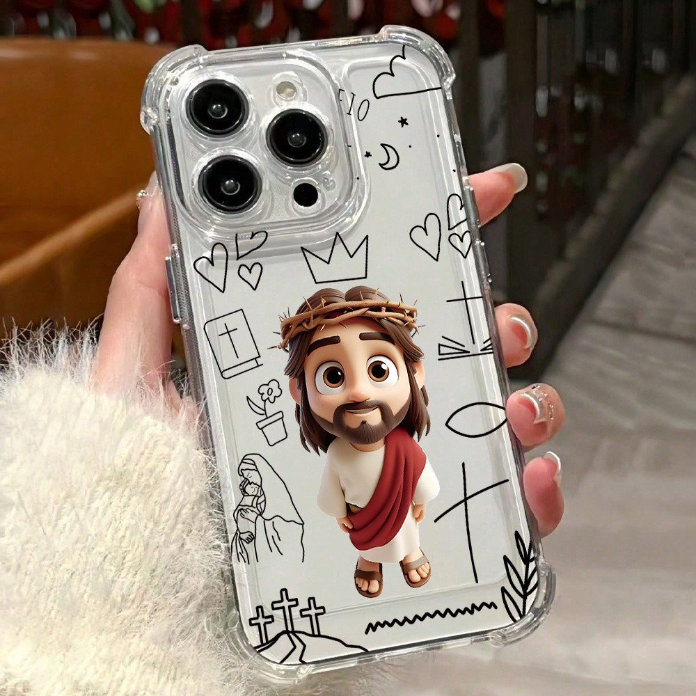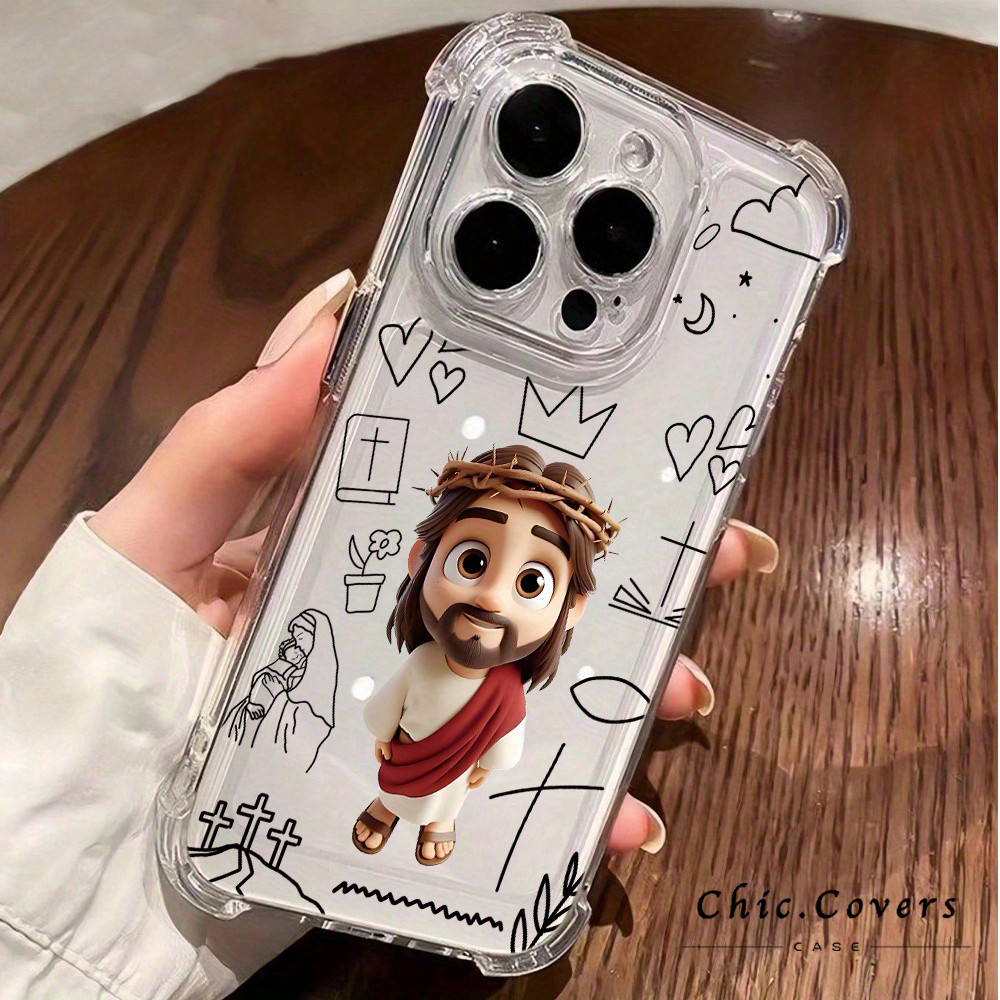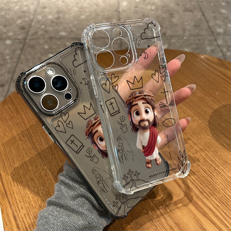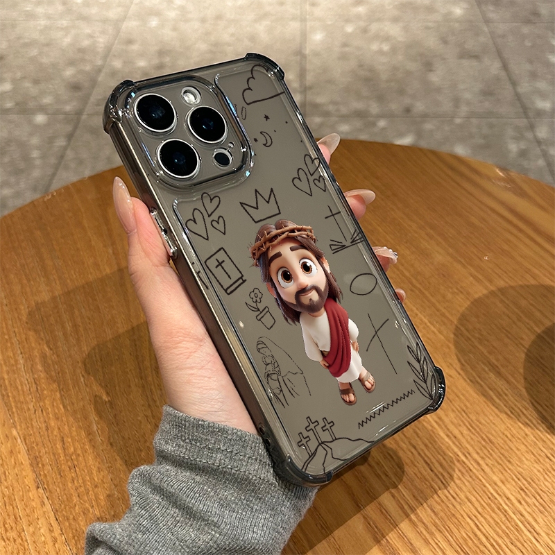 Jesus cartoon Capinha Capa de Transparente Para iPhone 11 14 15 16 12 17 13 pro max 7/8 plus produto em alta