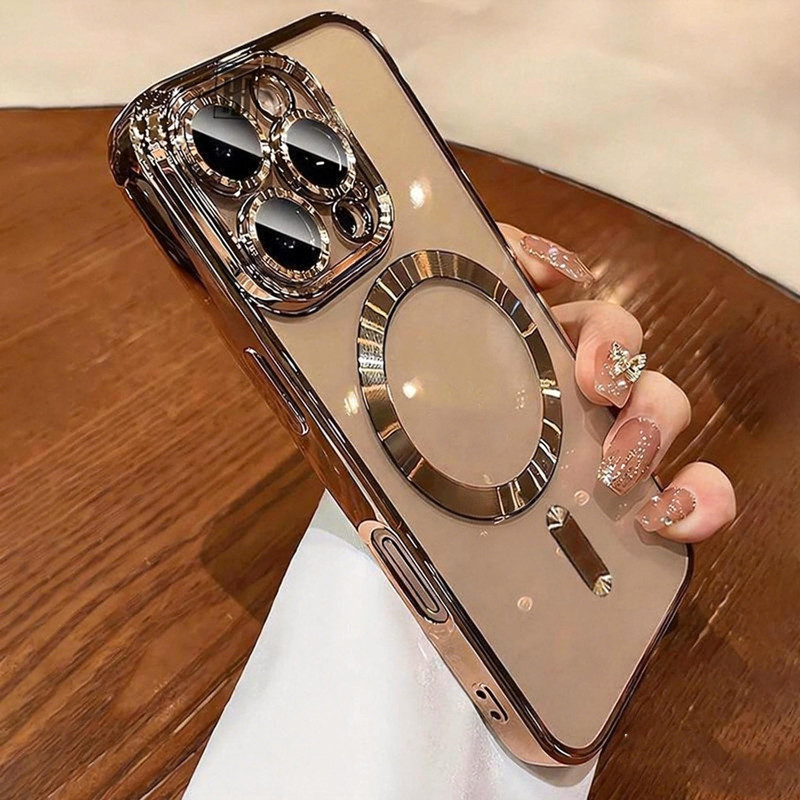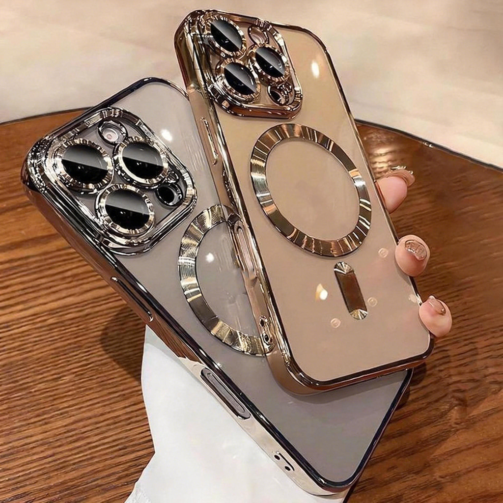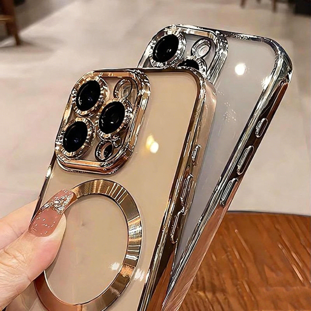 Capinha capa case magsafe eletroplateada textura roscada com proteção de lente para iphone 11 12 13 14 15 16 promax