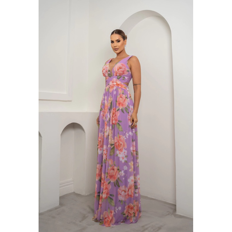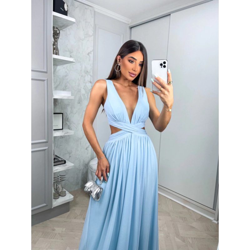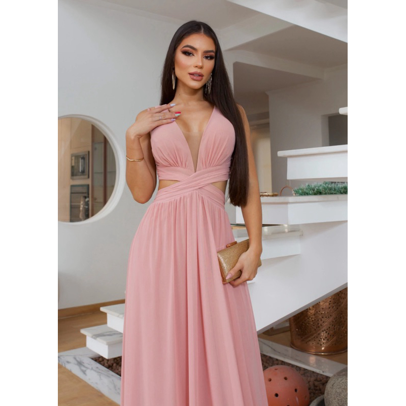 Vestido de festa longo Micro tule REF001 com abertura na lateral /formatura / casamento / madrinha / convidadas