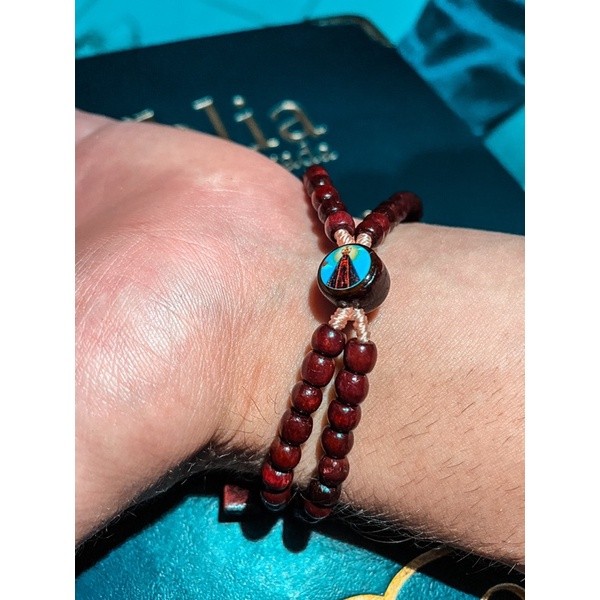 Terço de Pulso Pulseira Madeira Ajustável Nossa Senhora Aparecida