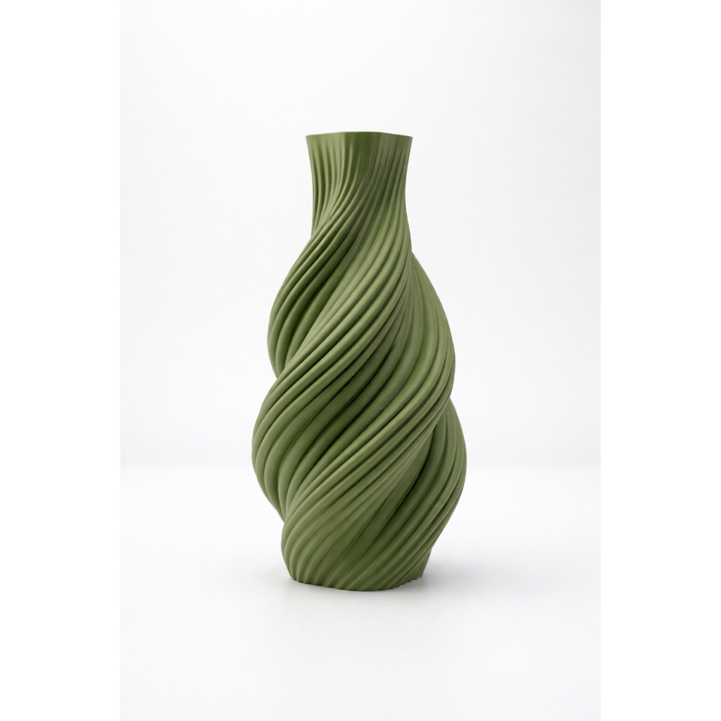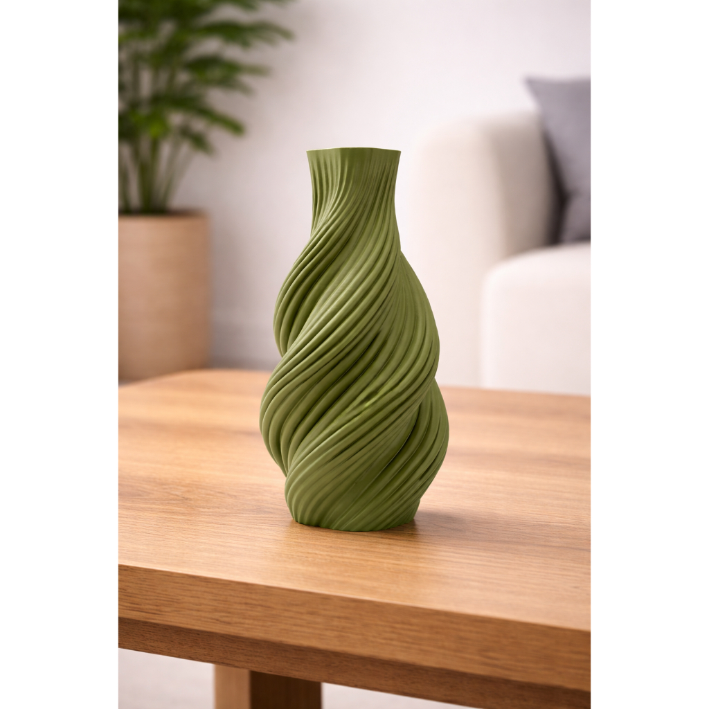 Vaso Decorativo Verde com Design Espiral Moderno
