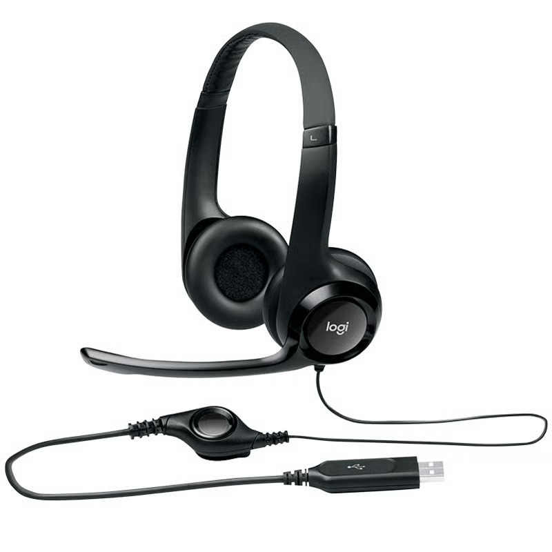 Headset com fio USB Logitech H390 com Almofadas Confortáveis, Controles de Áudio Integrado e Microfone USADO