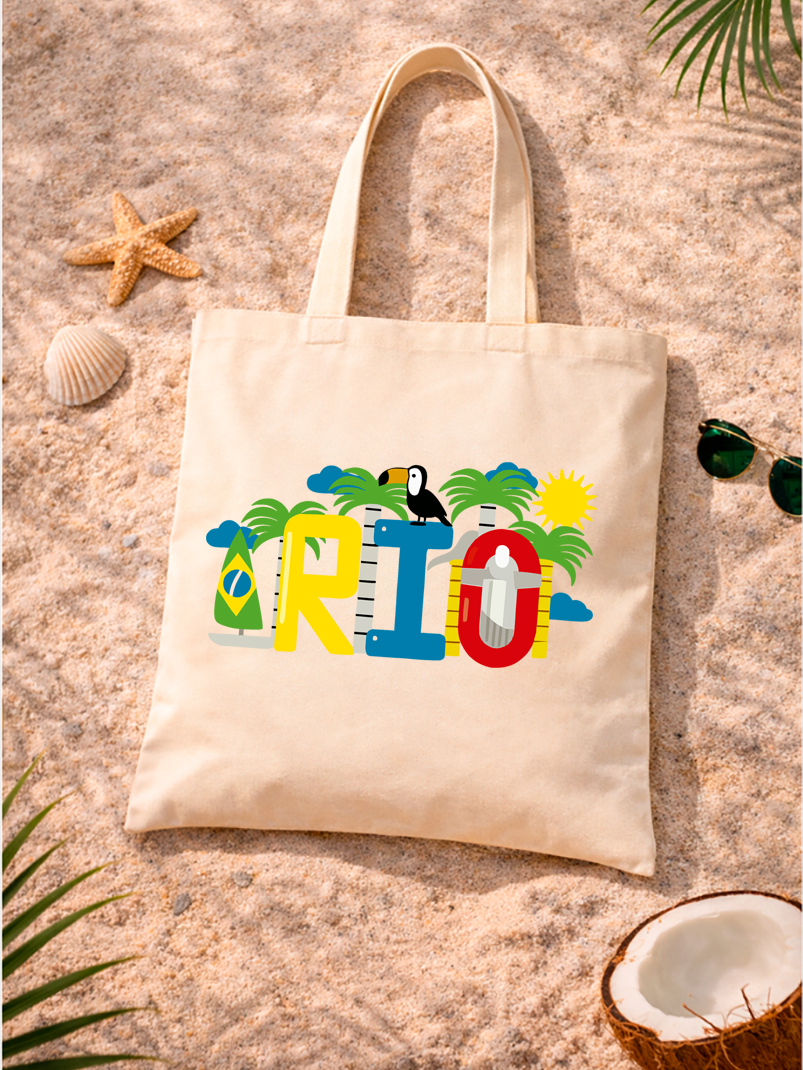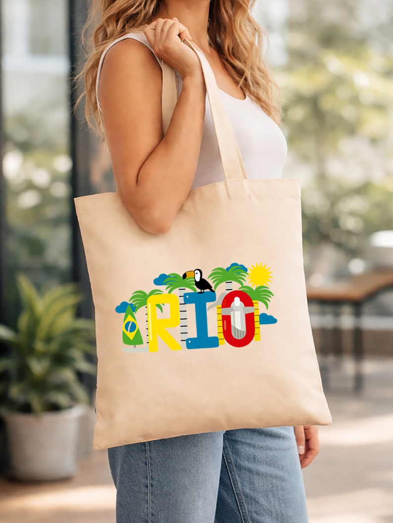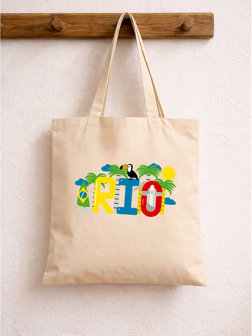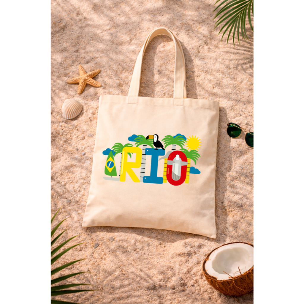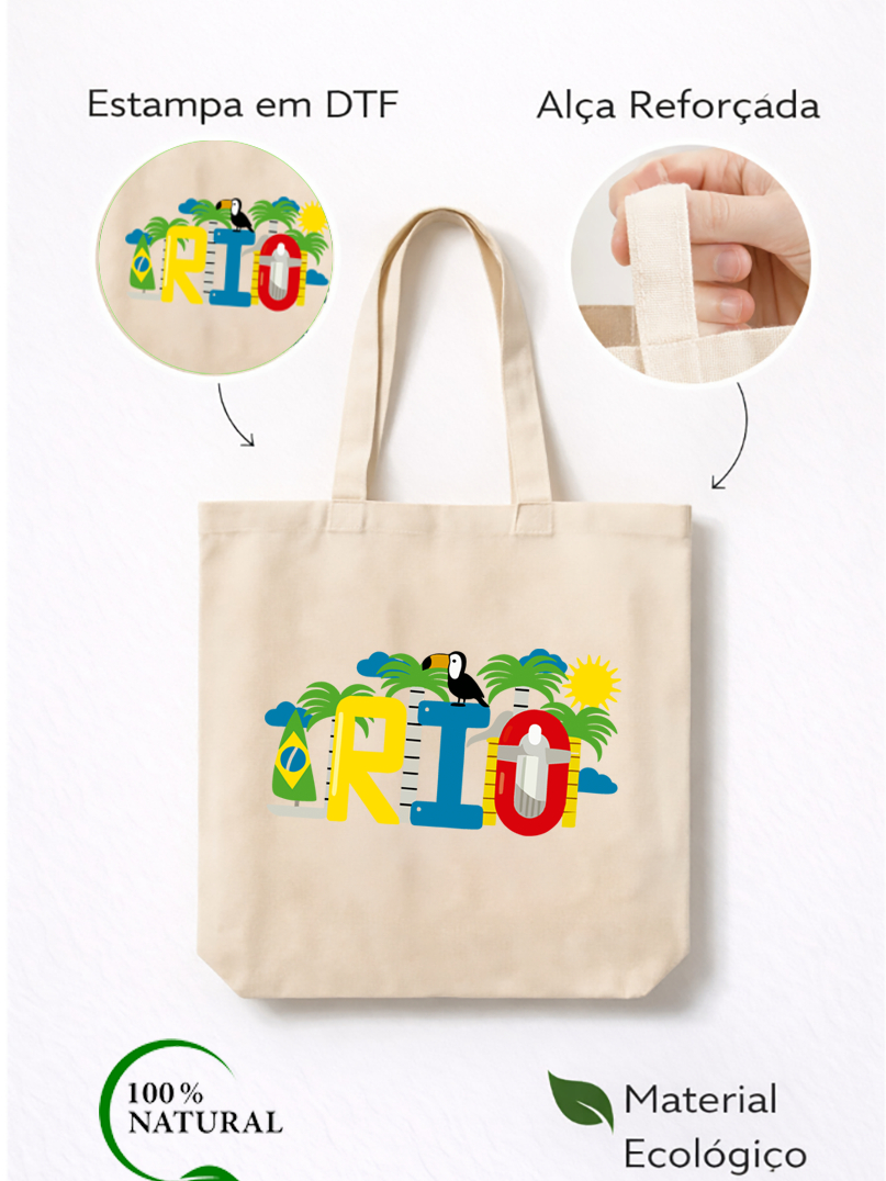 Eco Bag Feminina Algodão Rio de Janeiro Bolsa Reutilizável Moda Sustentável 38x40 tucano passaro