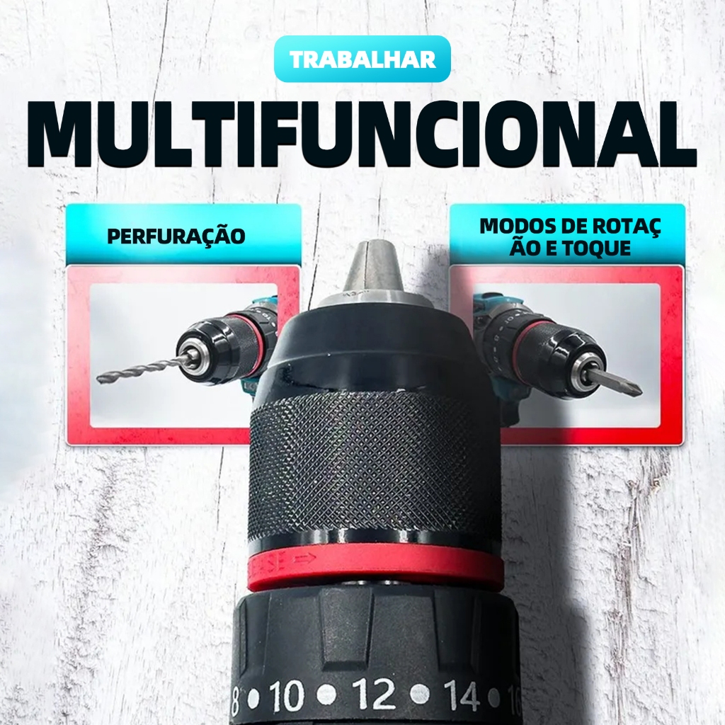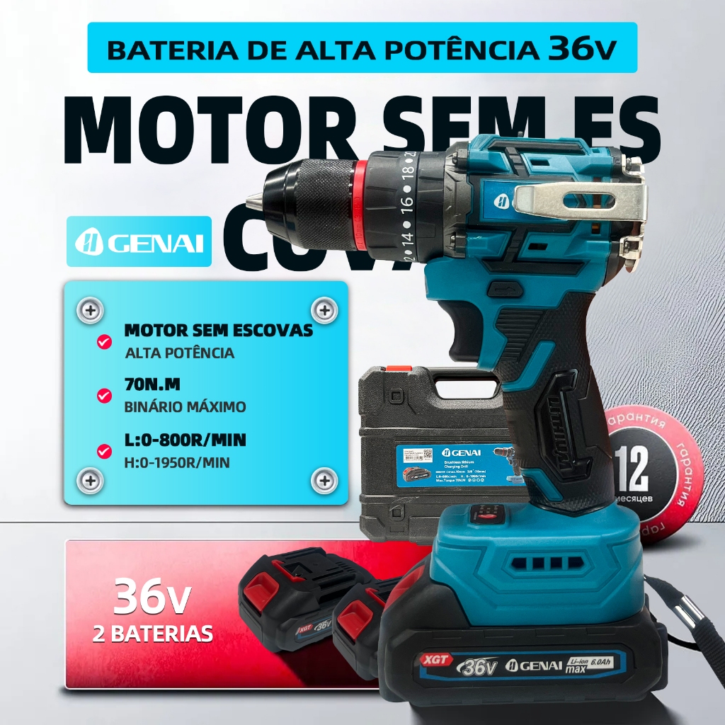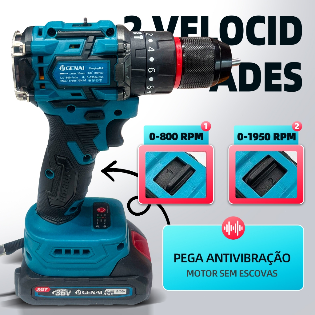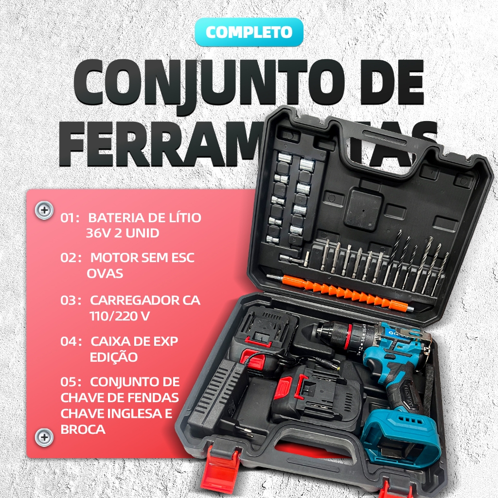 Brushless Parafusadeira Furadeira 21V 2 Baterias Com Maleta Completo 70N.m