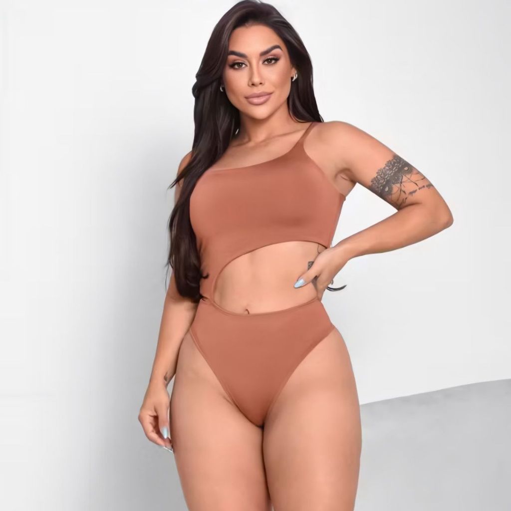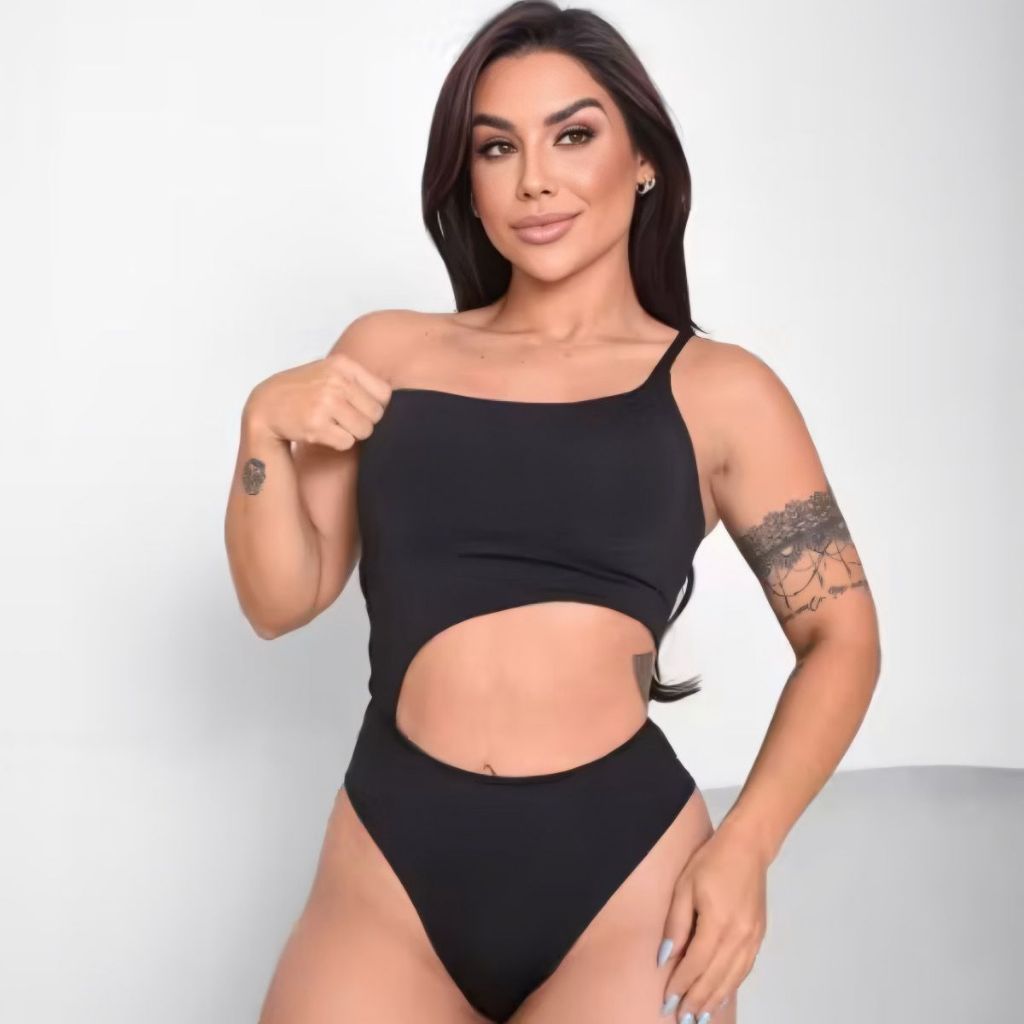 Body Maiô Collant Feminino Um Ombro Mula Manca Recorte Verão Modelador