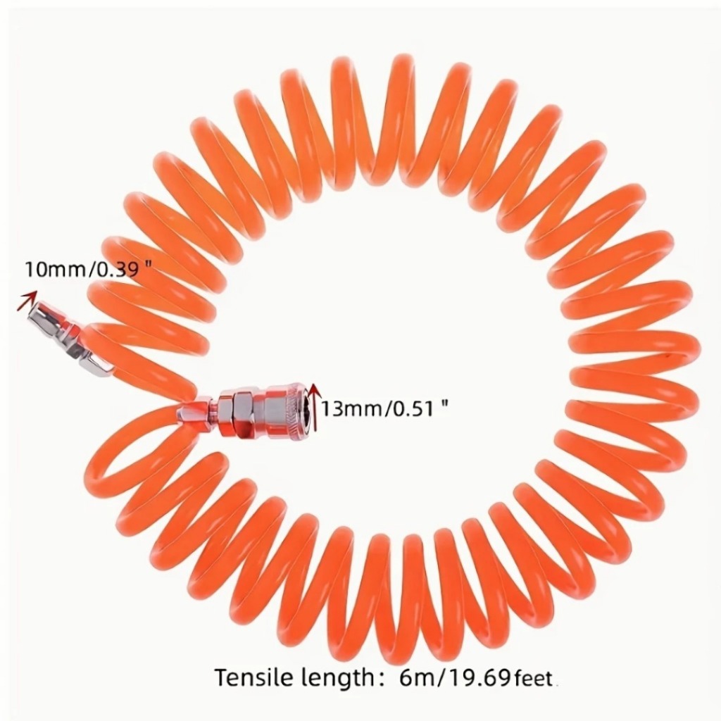Mangueira de Ar Pneumática Espiral 3M/6M Com Conectores Rápidos, Resistente para Ferramentas Pneumáticas