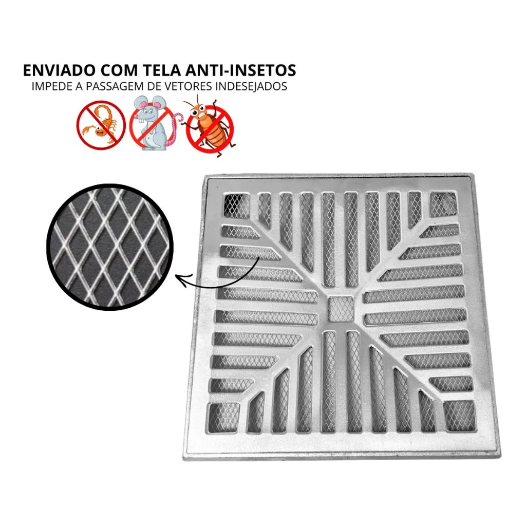 Ralo Côncavo 25x25 Alumínio Anti Insetos para Quintal Varanda Piscina Corredor Jardim