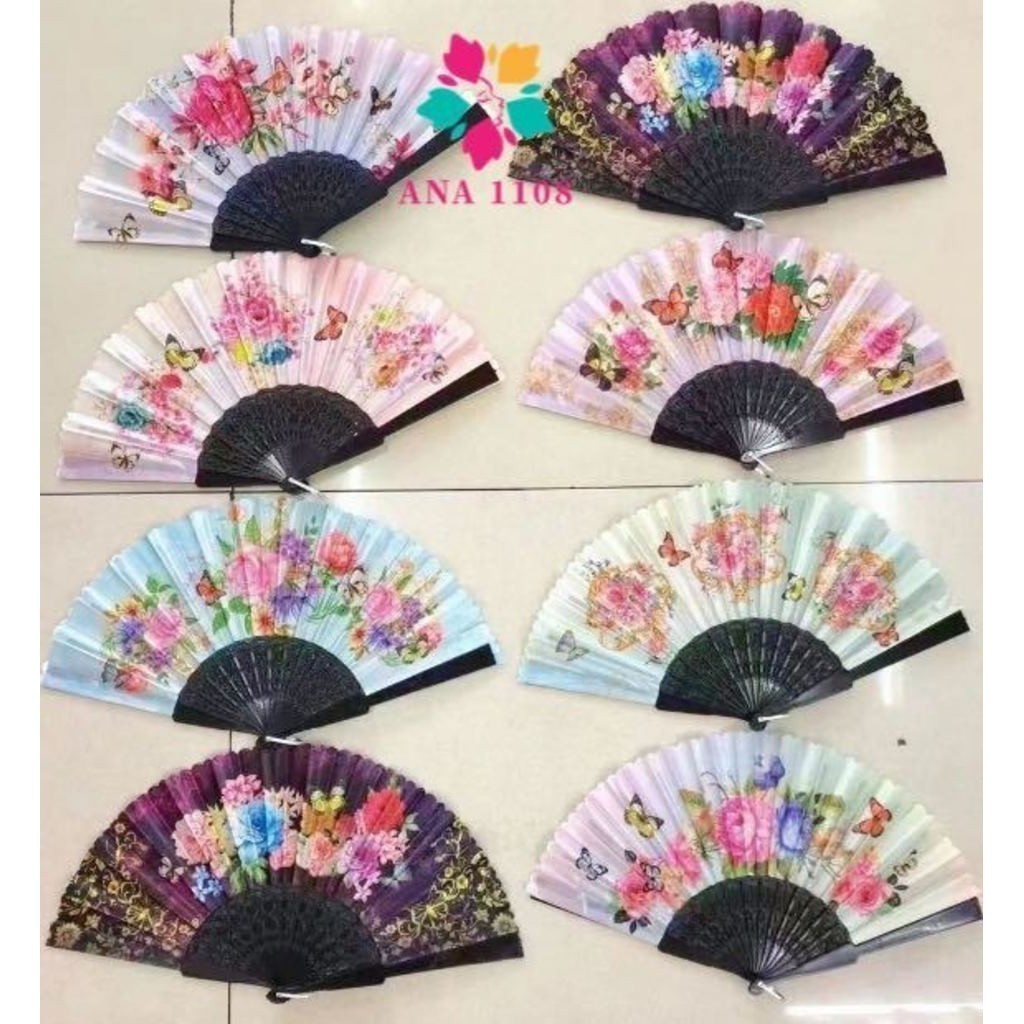 GUI ANA Leque de Tecido Colorido/PRETO Estampado Plastico perfeito para lembrancinha Casamento