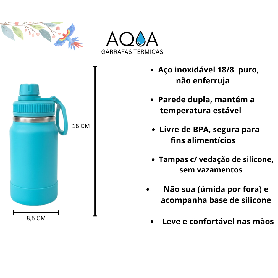 Garrafa Térmica Premium Infantil 350 ml Personalizada Nome + Desenho Aço Inox + Base de silicone