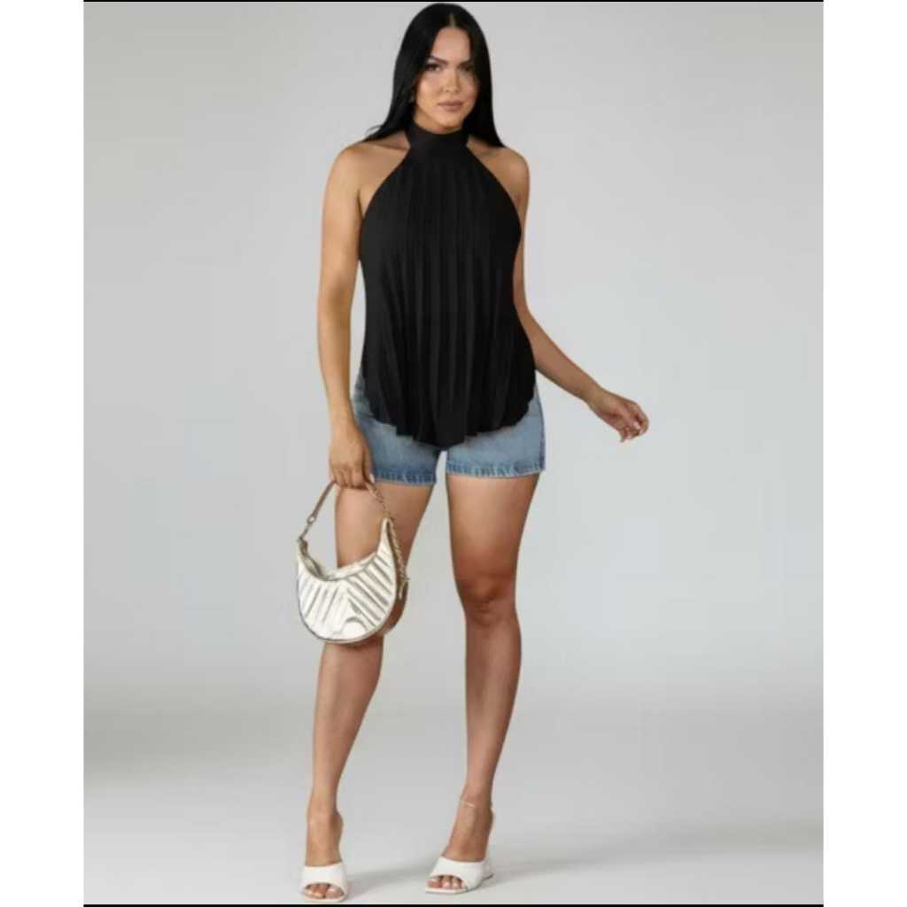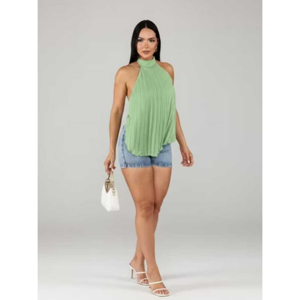 BATA EM TECIDO CREPE PLISSADO COM DETALHES EM AMARRACAO NAS COSTAS E COM FORRO