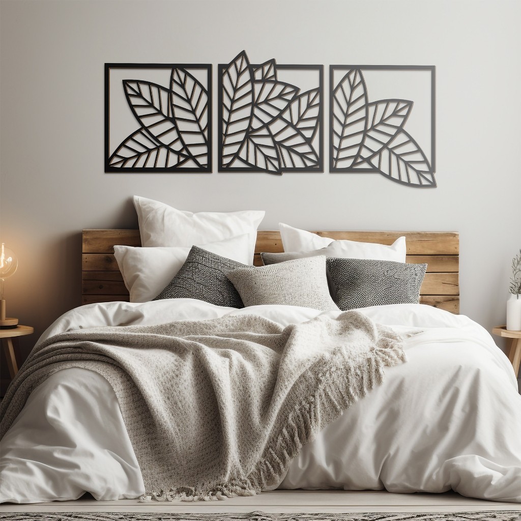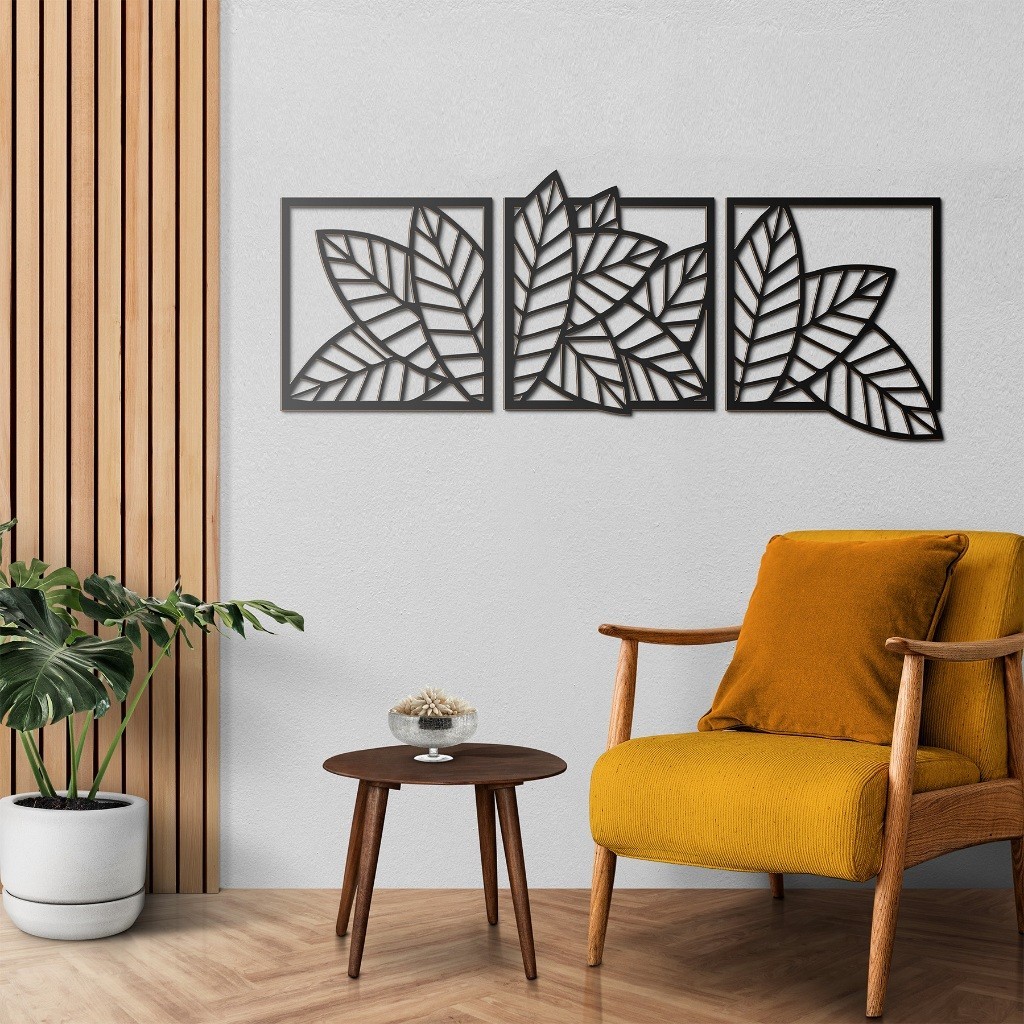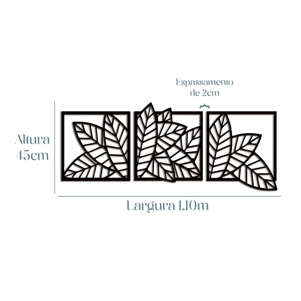 Kit 3 peças Quadro Decorativo Folhas Vazado 100% MDF 3mm Folhagens