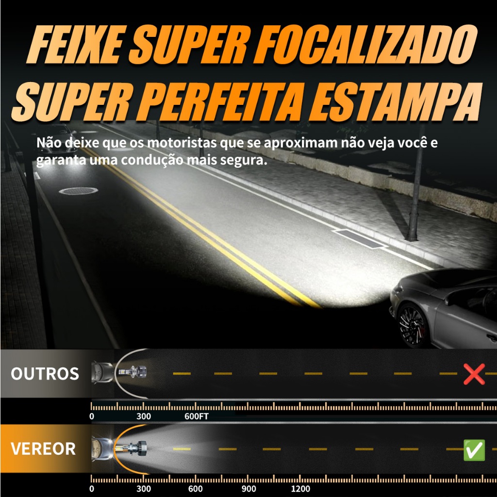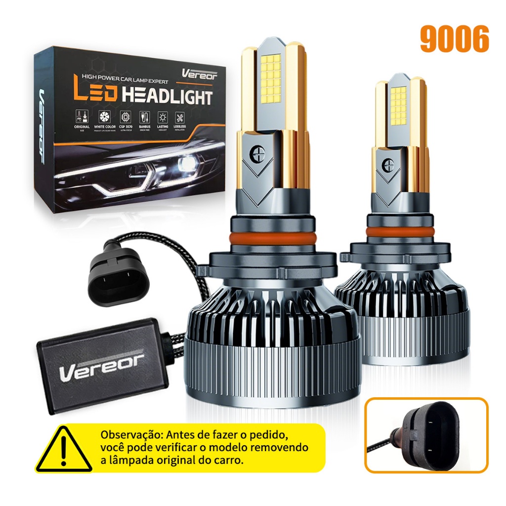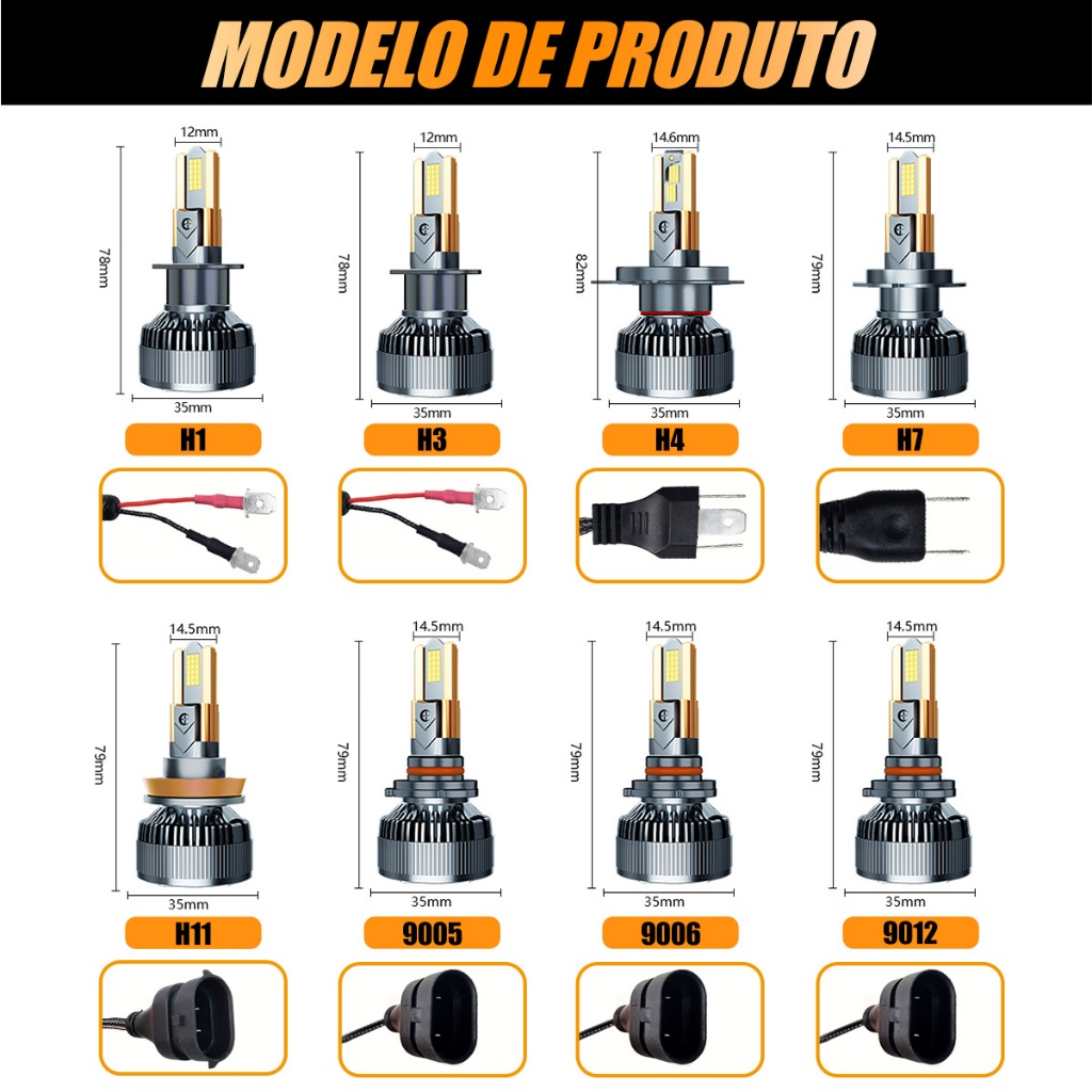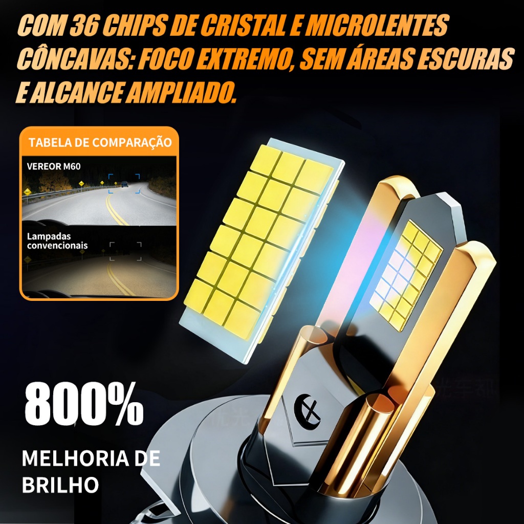 Luz LED Super Branca 6000K para Farol Kit M60 Par H1 H3 H4 H7 H11 9005 9006 300W 40000LM Universal Alto Brilho